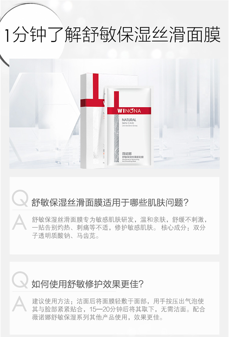 【自营】 薇诺娜 舒敏保湿丝滑面贴膜 6片