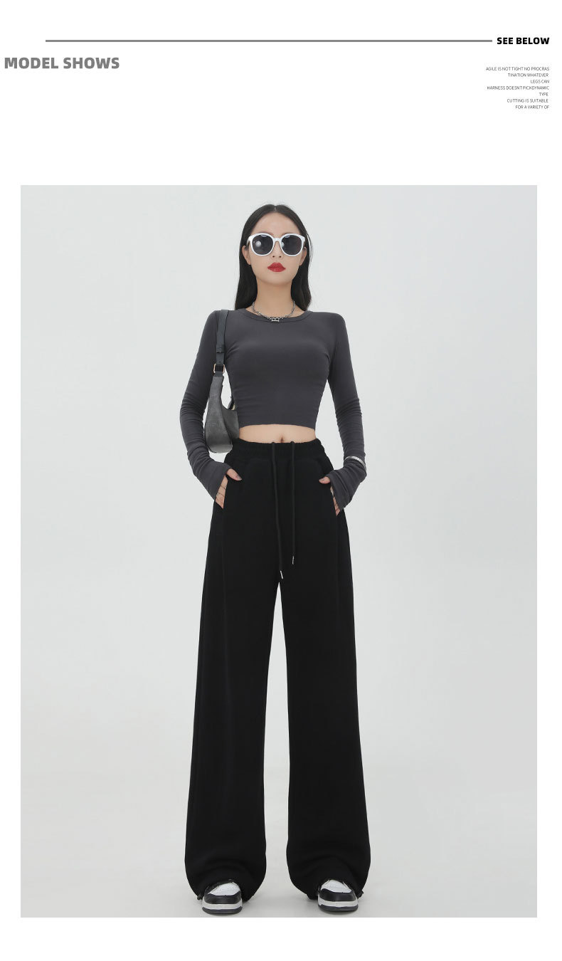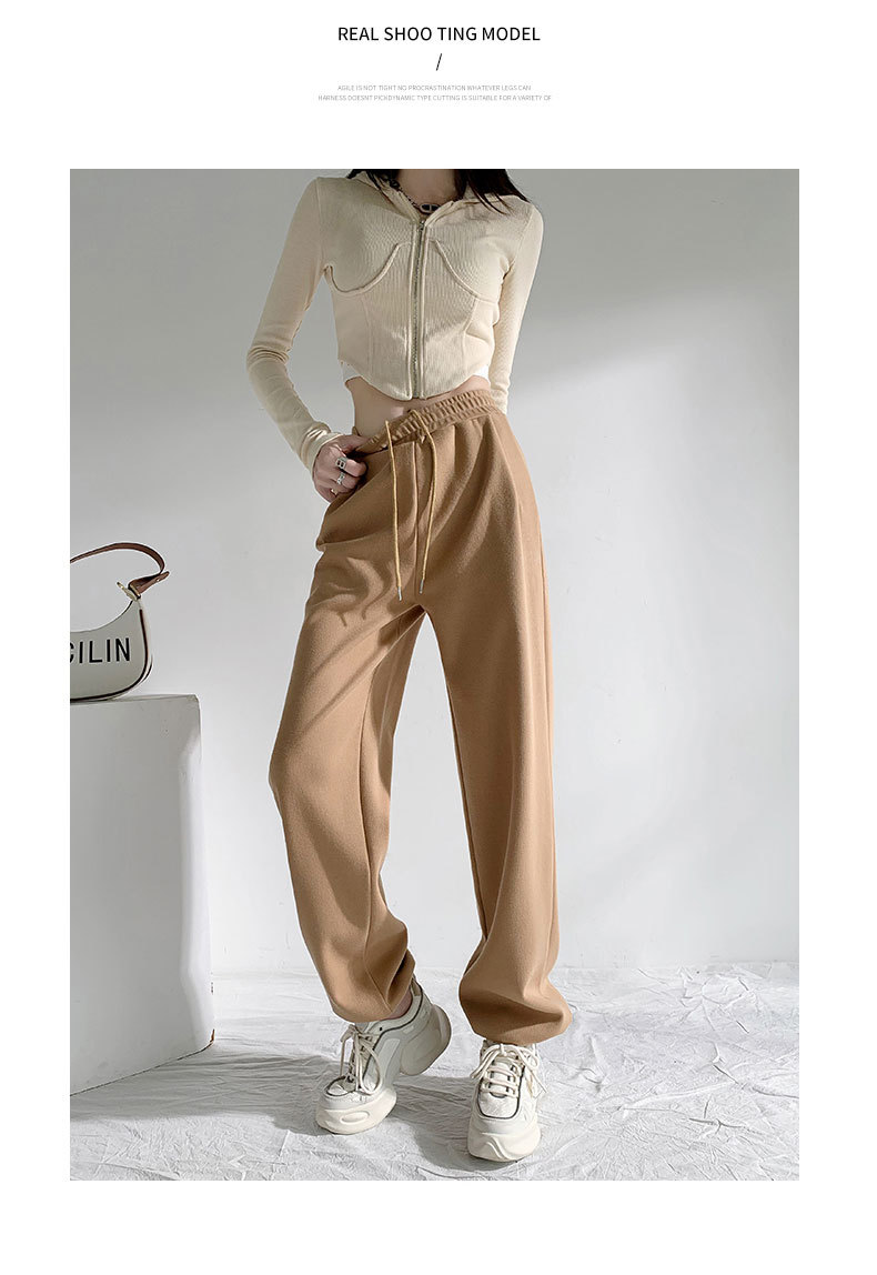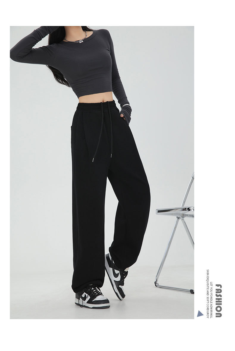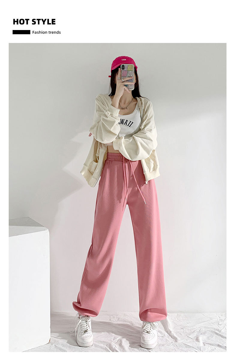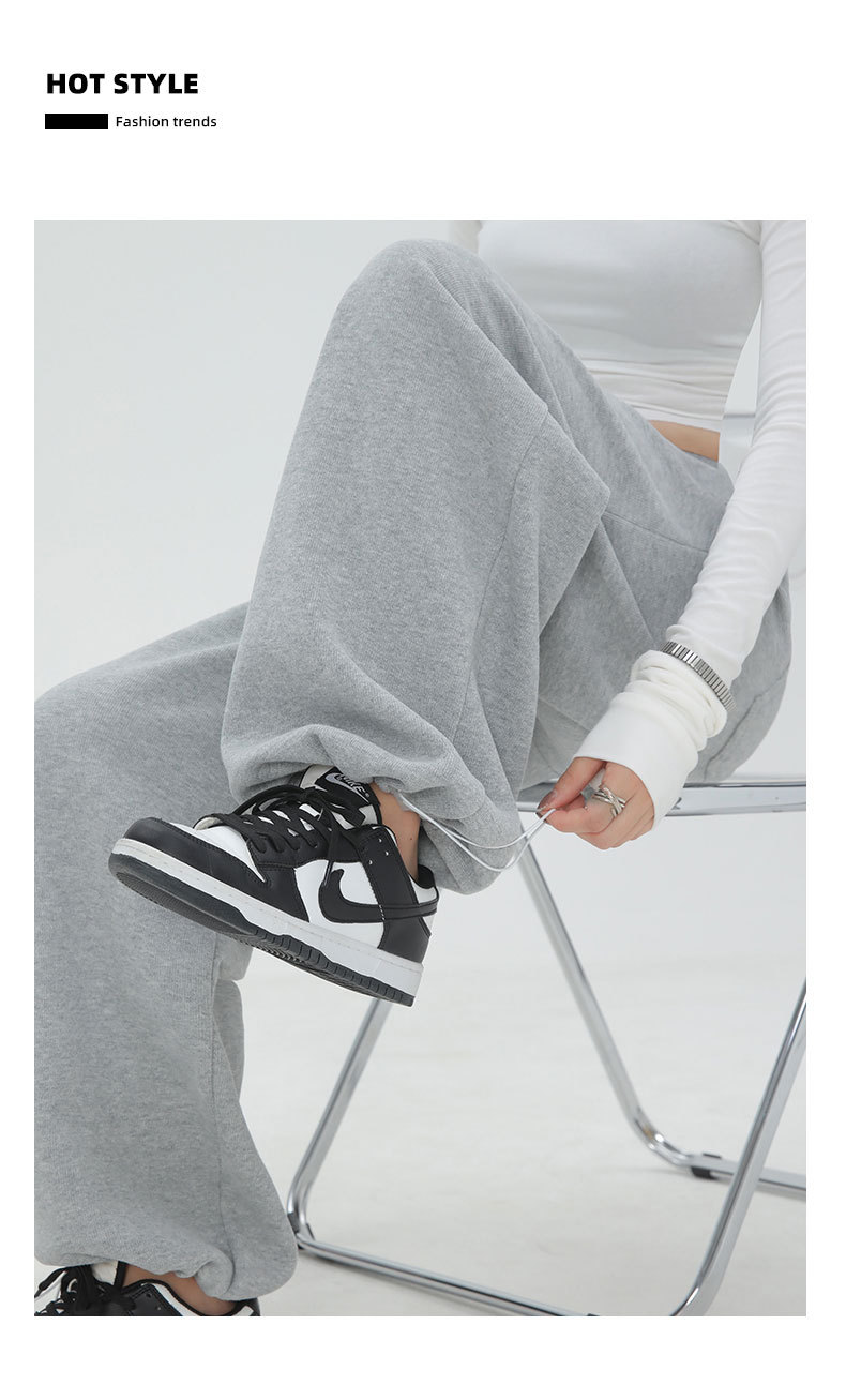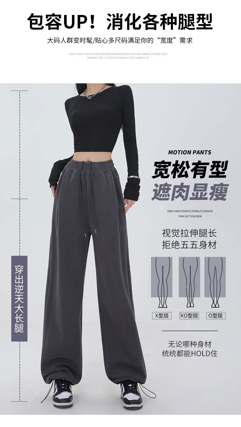 「8色可选!2024春夏新款」美式运动裤子女春秋2024束脚宽松阔腿裤垂坠感休闲直筒小个子卫裤下装