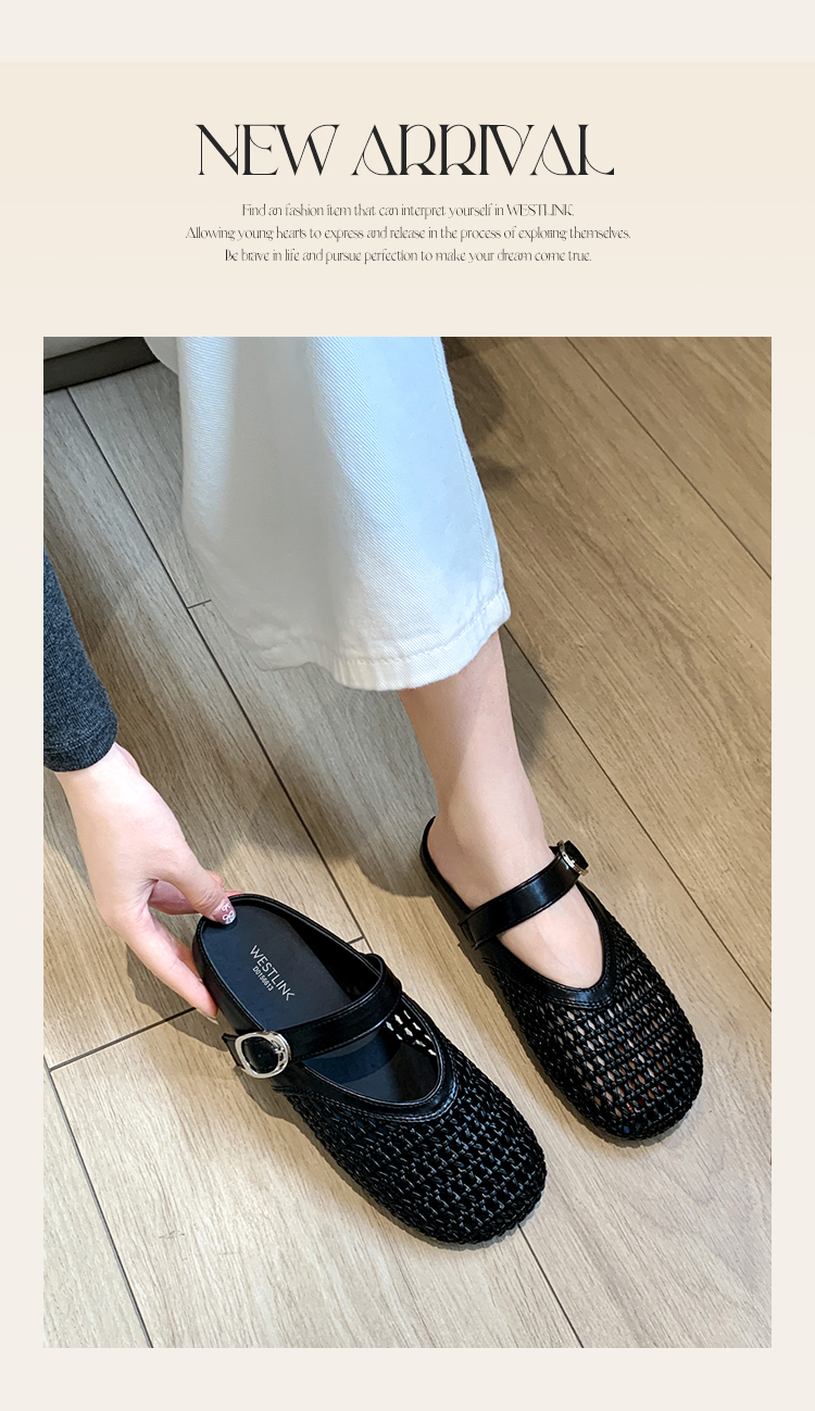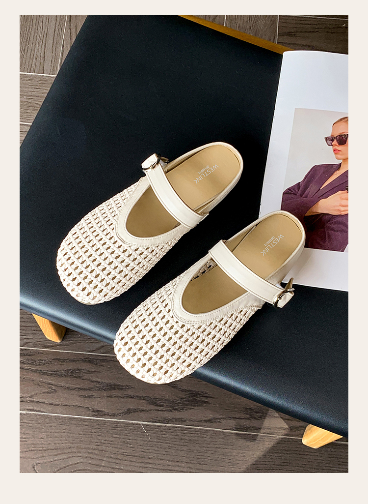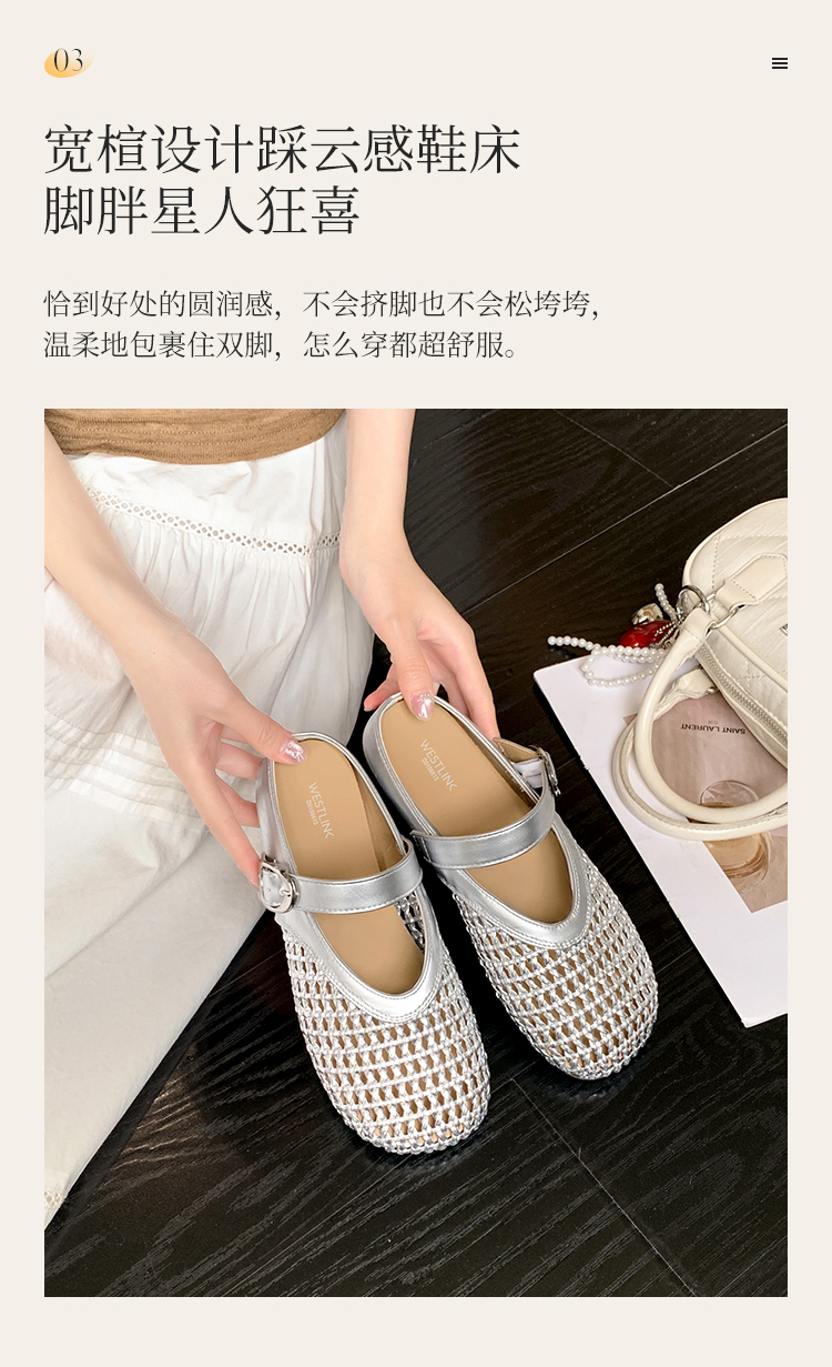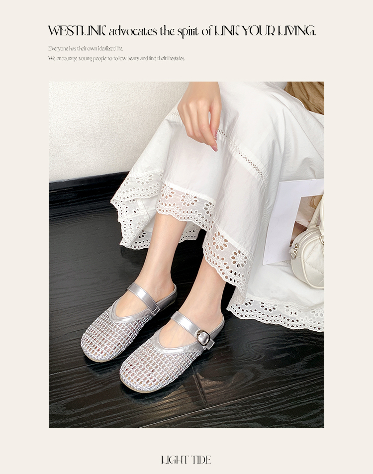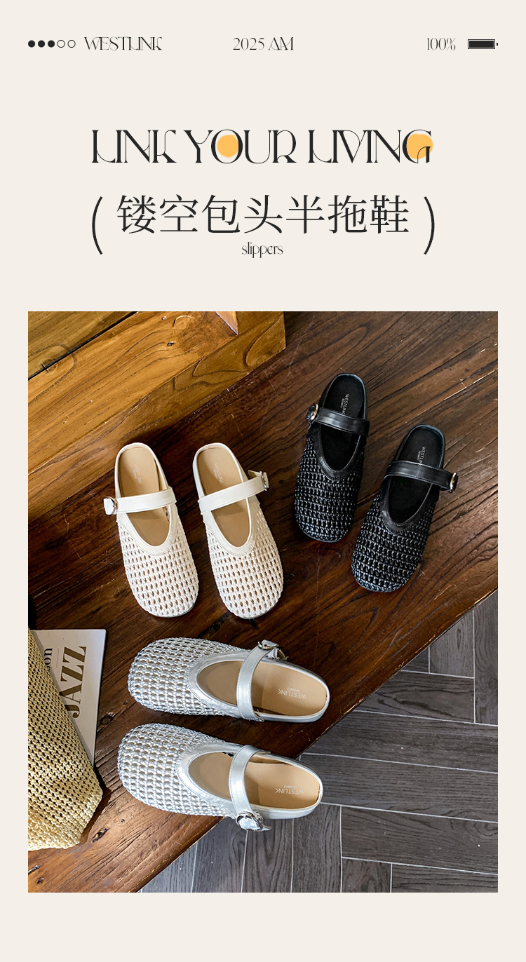 西遇镂空包头半拖鞋女新款夏季一脚蹬穆勒鞋网面外穿凉拖鞋D0156613