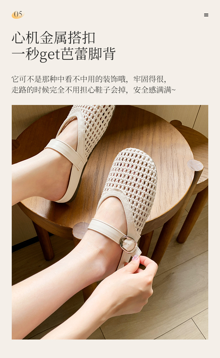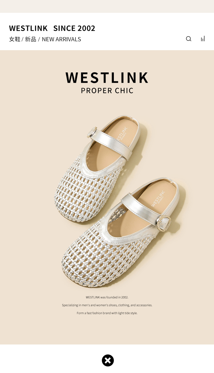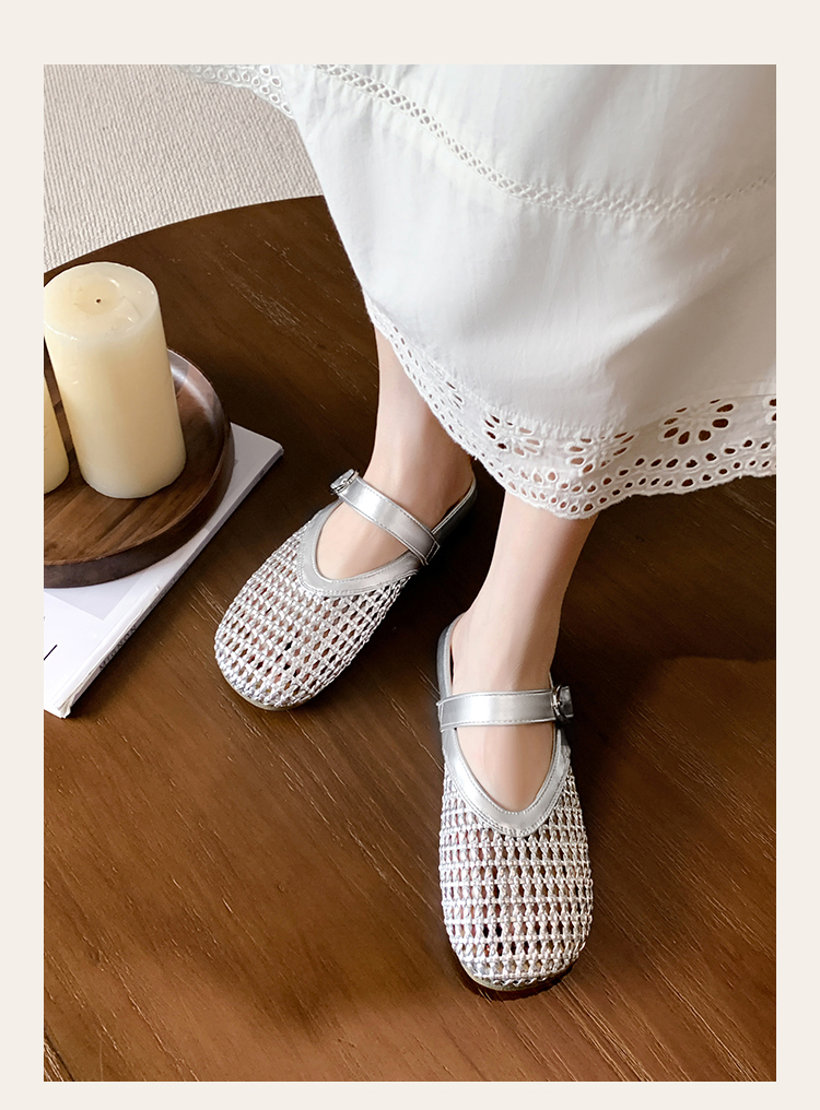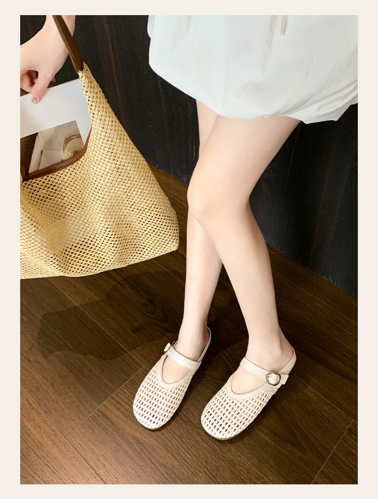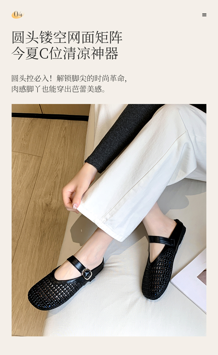 西遇镂空包头半拖鞋女新款夏季一脚蹬穆勒鞋网面外穿凉拖鞋D0156613