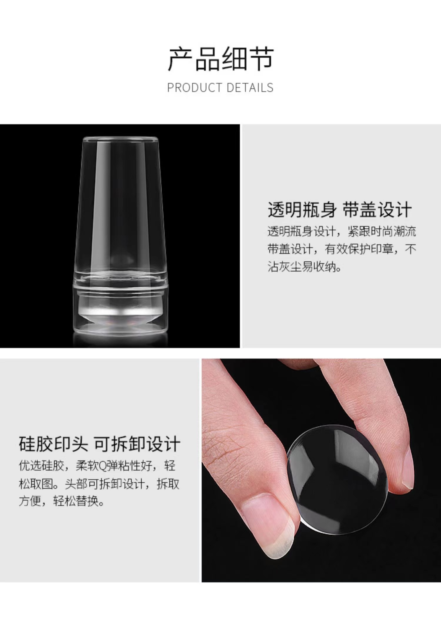 美潮美甲法式印章硅胶透明网红指甲款式美甲店专用印花工具