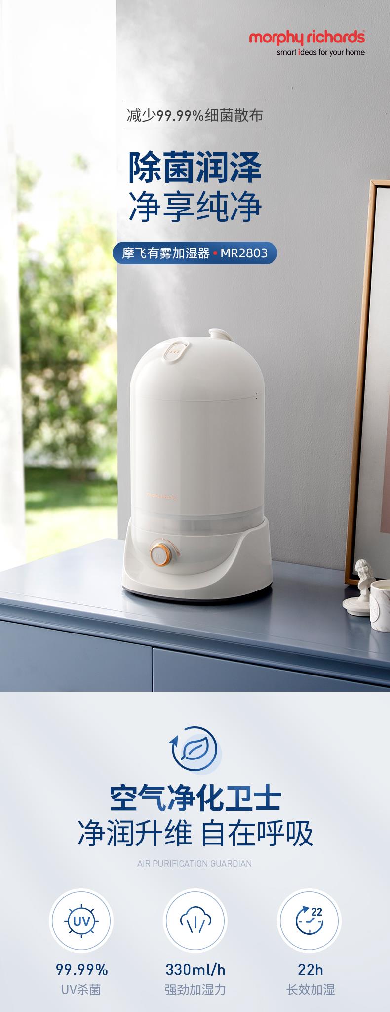 预售3天发货【自营】 摩飞 除菌加湿器 紫外线杀菌 大雾量加湿 陶瓷芯雾化 MR2803