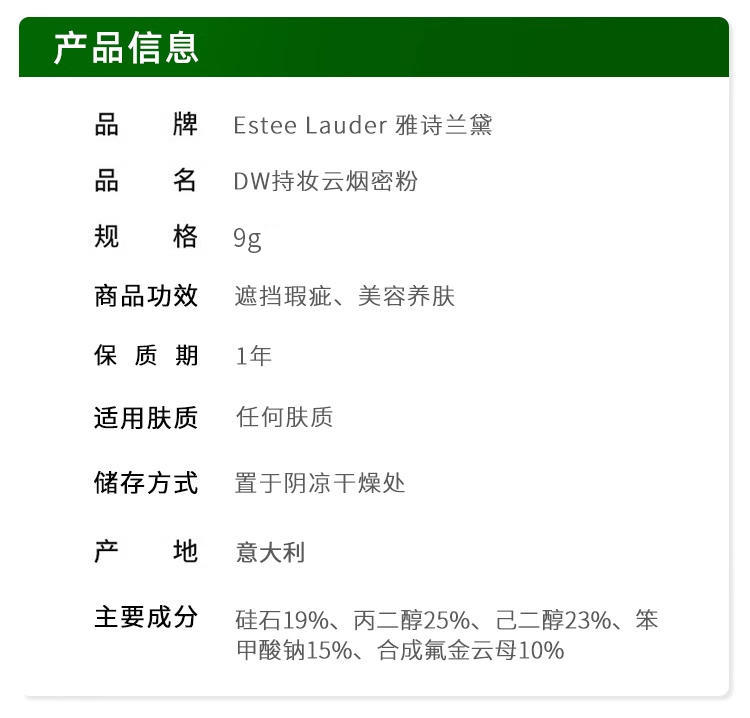 【海豚美购】Estee Lauder 雅诗兰黛 DW持妆云烟密粉9g