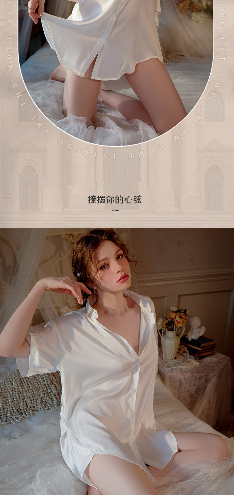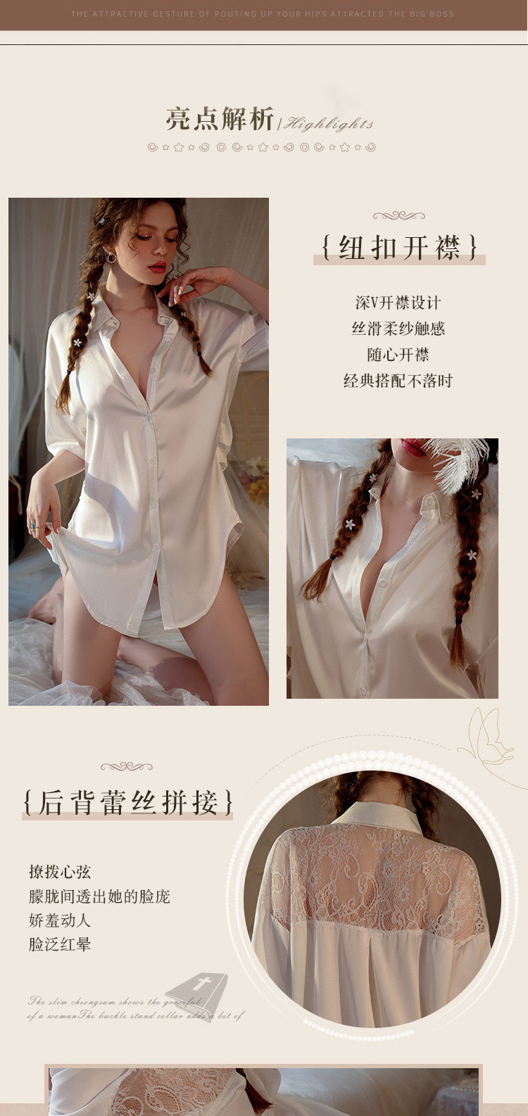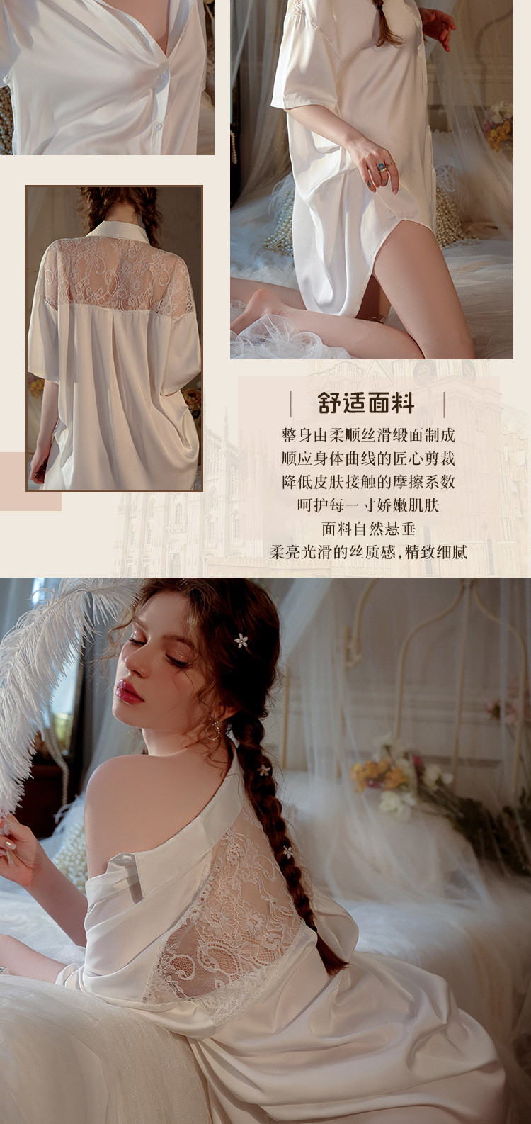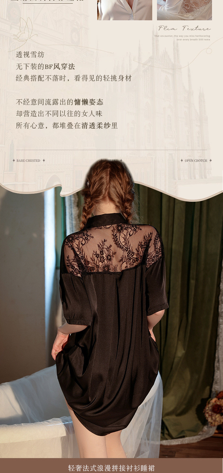 【前500名送蕾丝短裤】新款男友风衬衫睡衣纯欲法式蕾丝睡裙女(4-501)