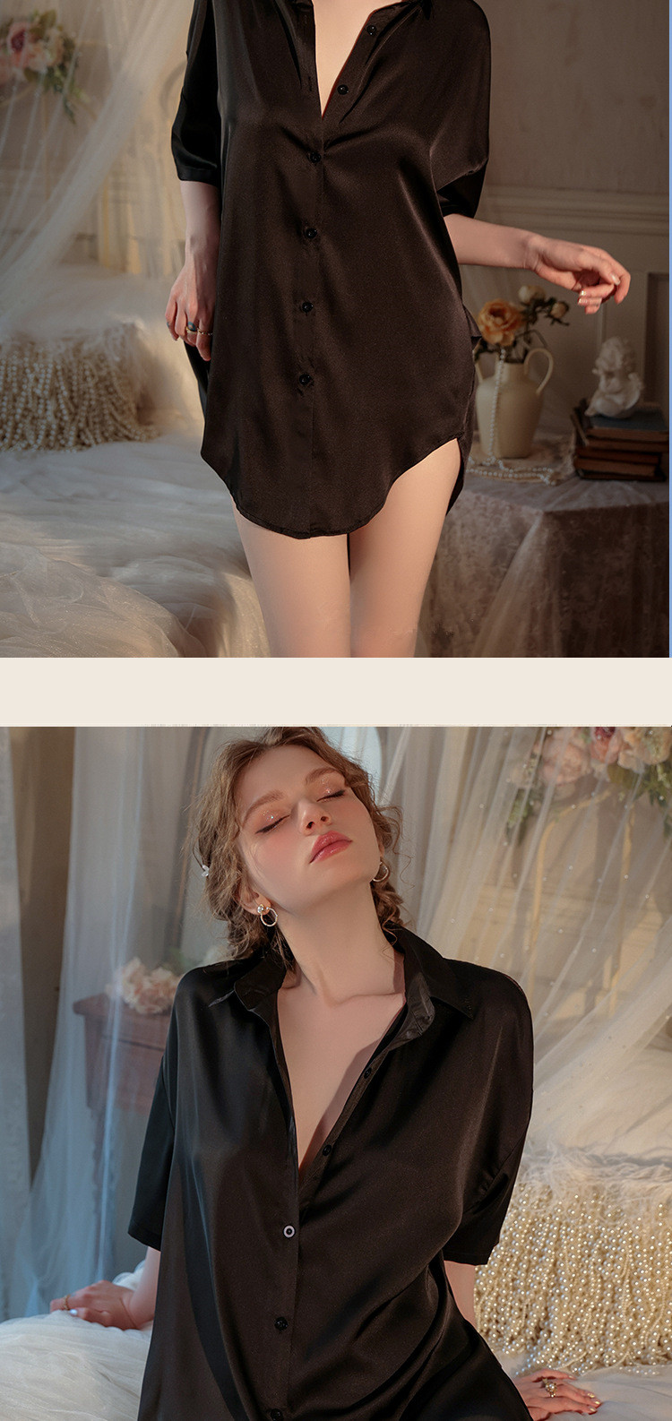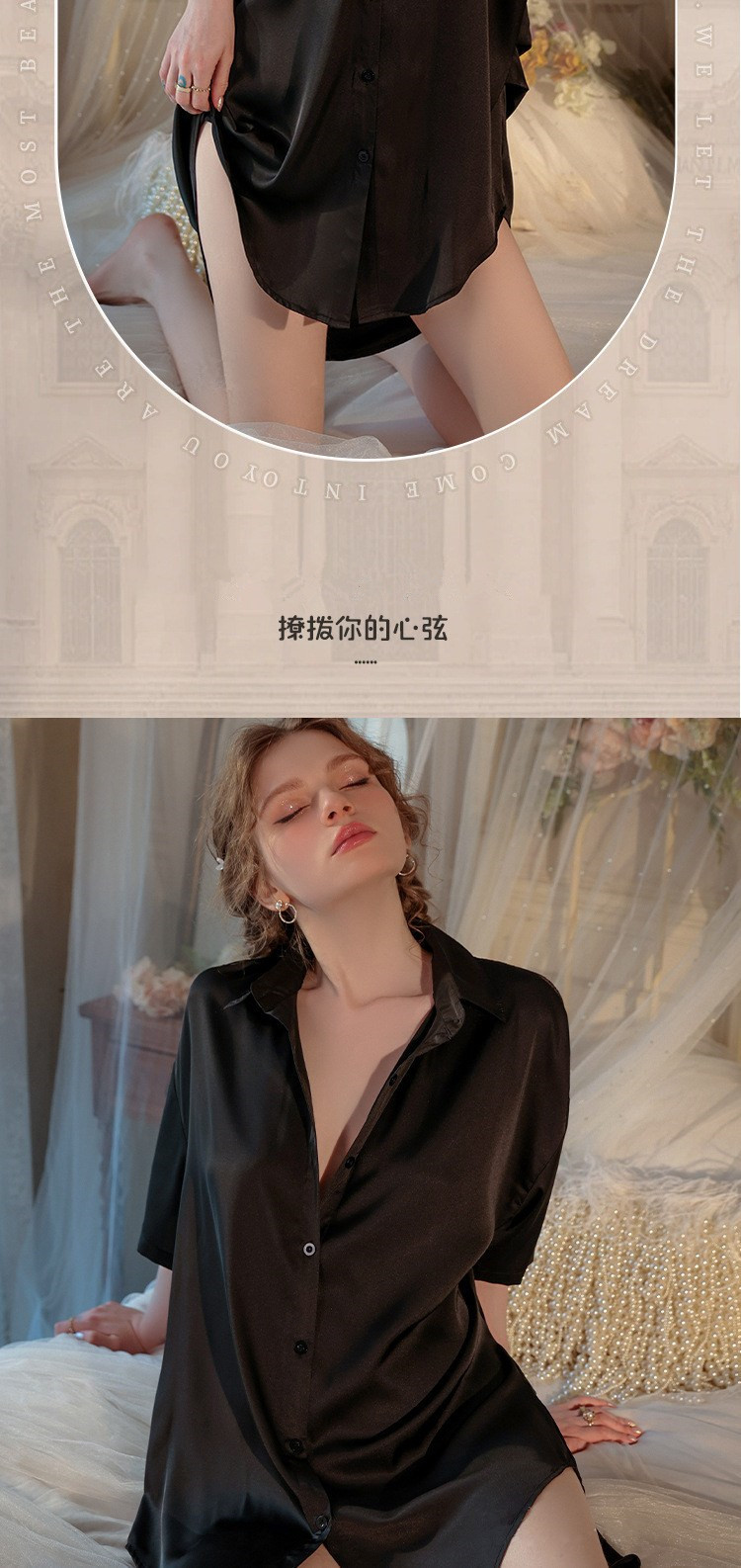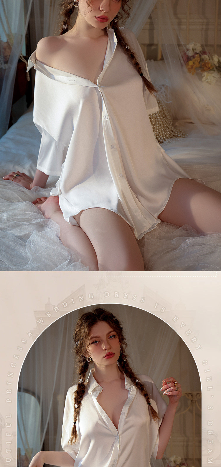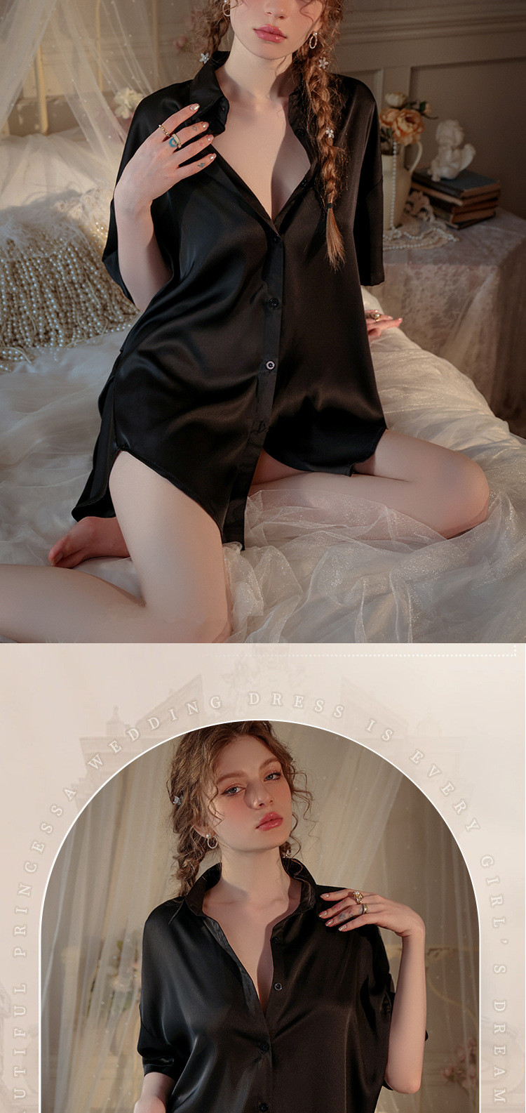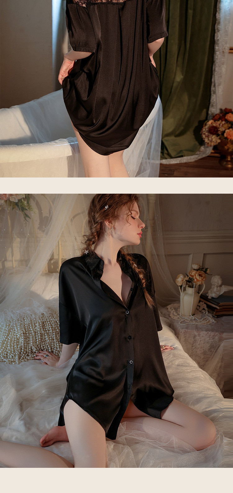 【前500名送蕾丝短裤】新款男友风衬衫睡衣纯欲法式蕾丝睡裙女(4-501)