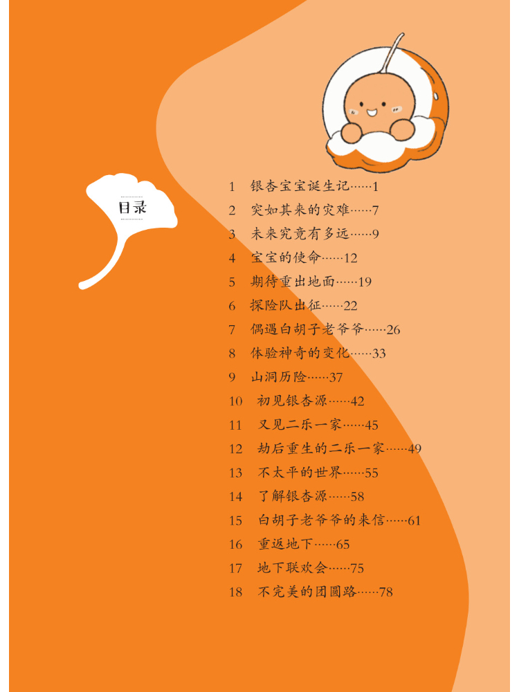 远古时期,恐龙乐乐种下一棵银杏树,孕育出 24 个银杏宝宝。一场灾难后,它们被深埋在地下数千万年。时光流转,银杏宝宝重见天日,开启了一场奇幻的旅程一-在老银杏树的指引下,它们齐心协力帮助恐龙复活,降伏妖怪、守护地球,最后化作淀粉进入24个同名幼儿的体内,助其成长…这是一部充满想象力的儿童文学作品,融合成长、亲情、友谊与科幻元素,激励小读者勇敢探索未知,感受科学与智慧的力量。