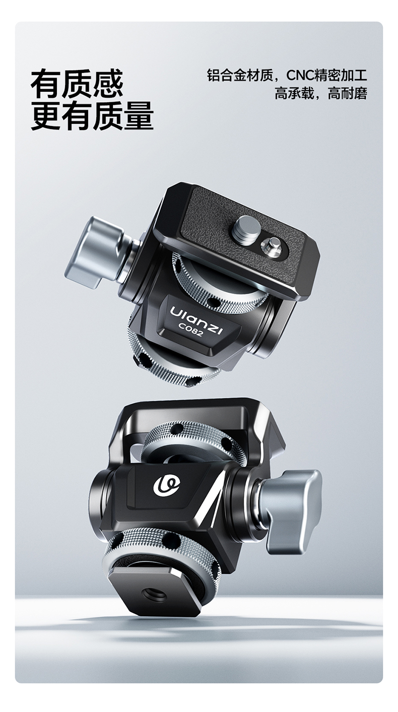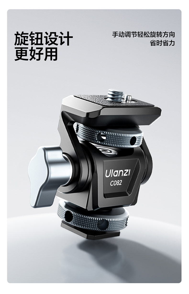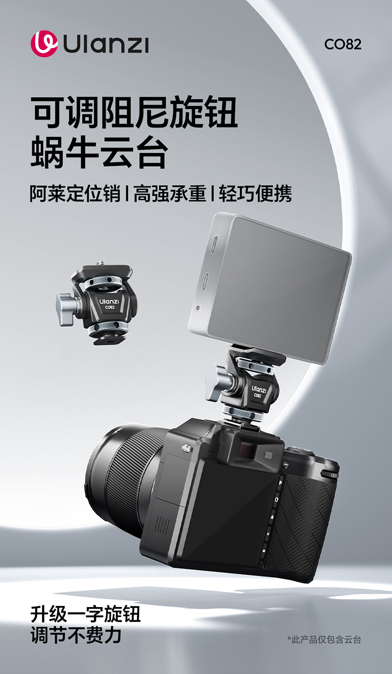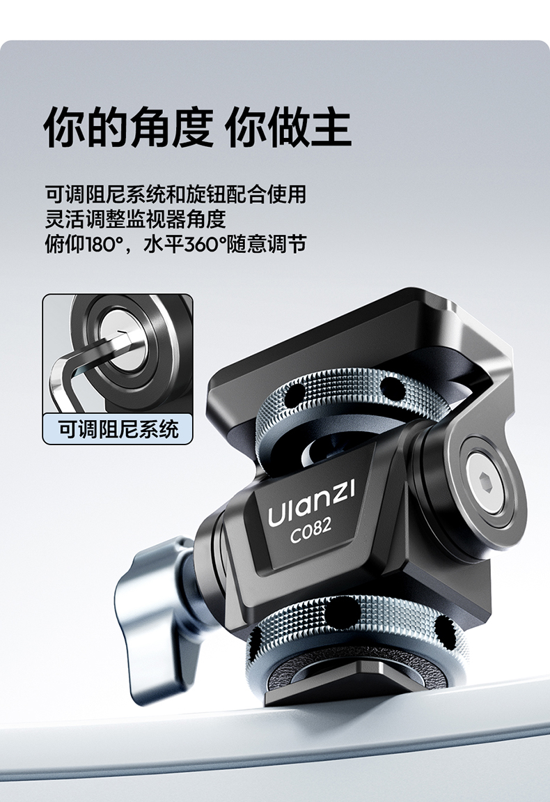 Ulanzi优篮子 CO82可调阻尼旋转蜗牛云台微单反相机通用阿莱定位销监视器支架1/4螺丝口兔笼底座摄影机配件