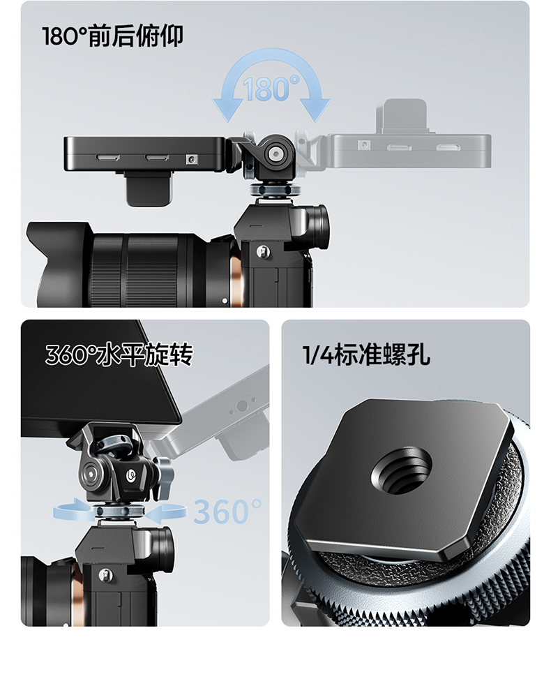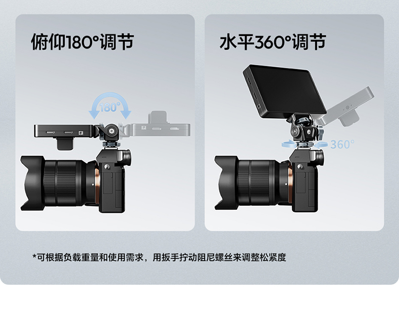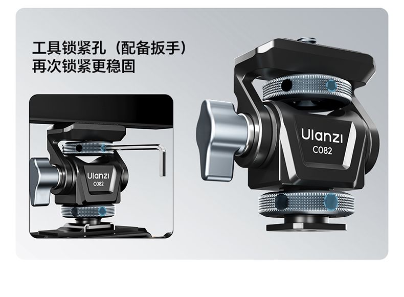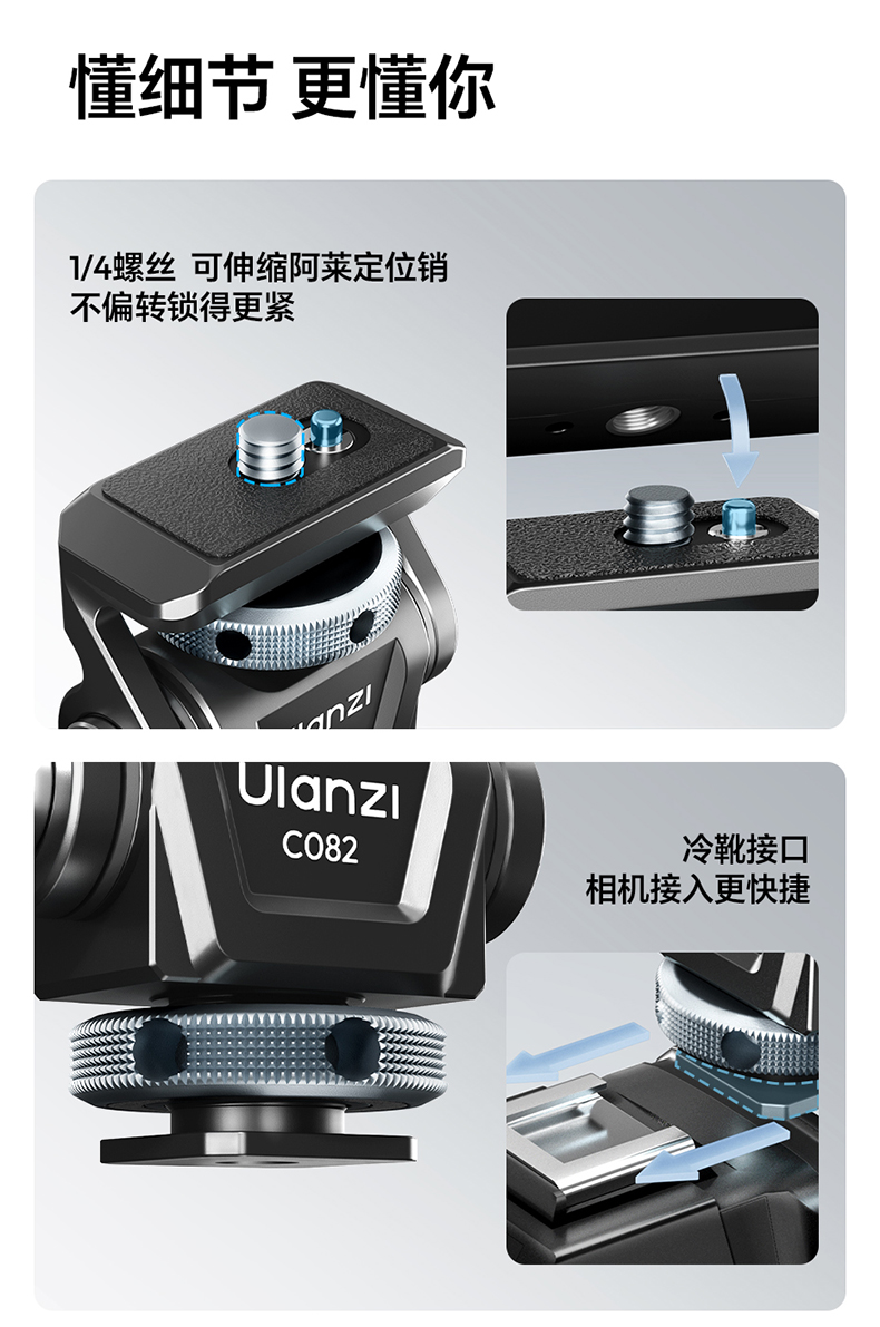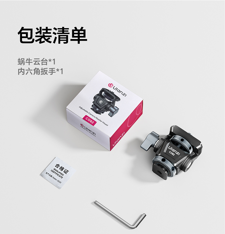 Ulanzi优篮子 CO82可调阻尼旋转蜗牛云台微单反相机通用阿莱定位销监视器支架1/4螺丝口兔笼底座摄影机配件
