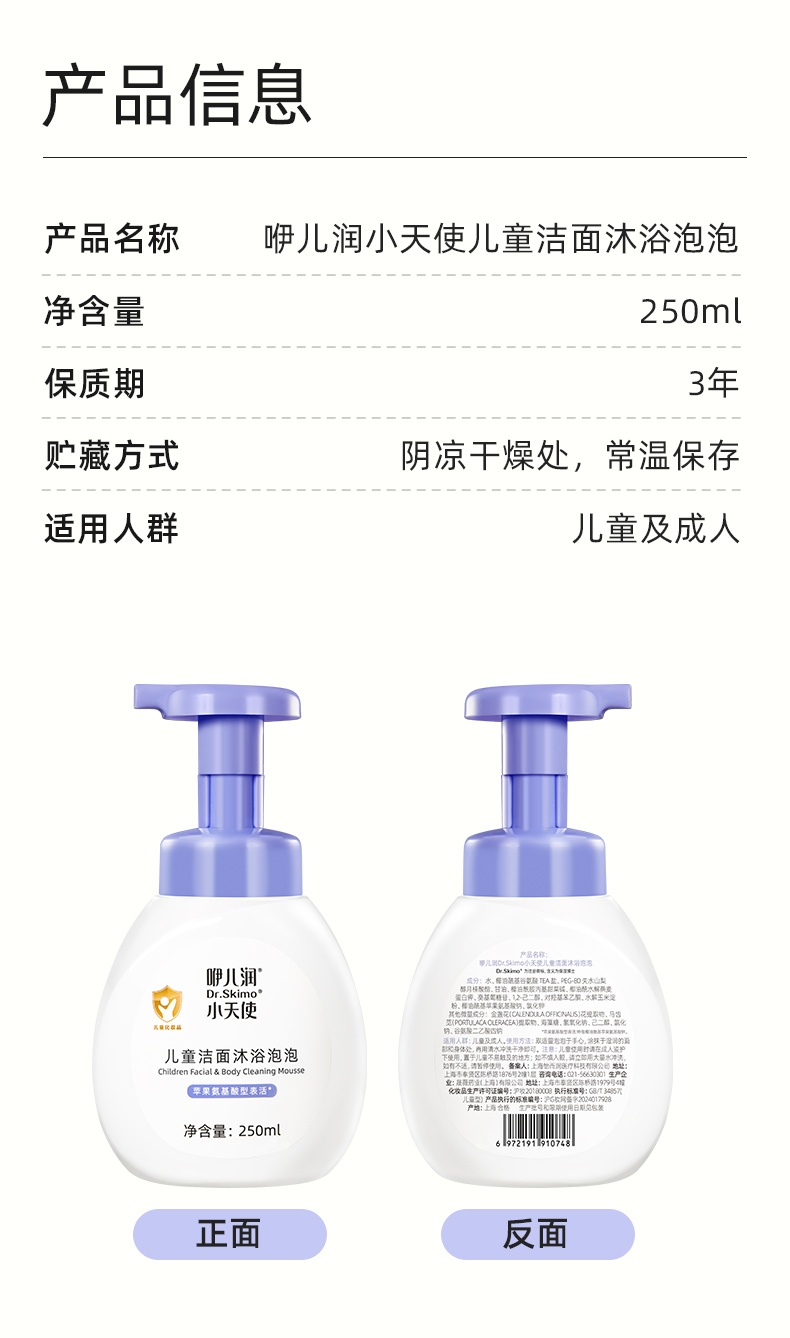咿儿润Dr.Skimo小天使儿童洁面沐浴泡泡 250ml-yw