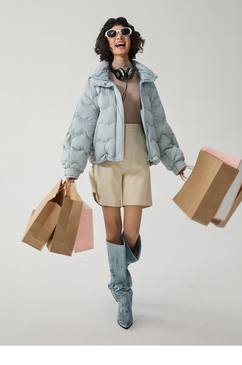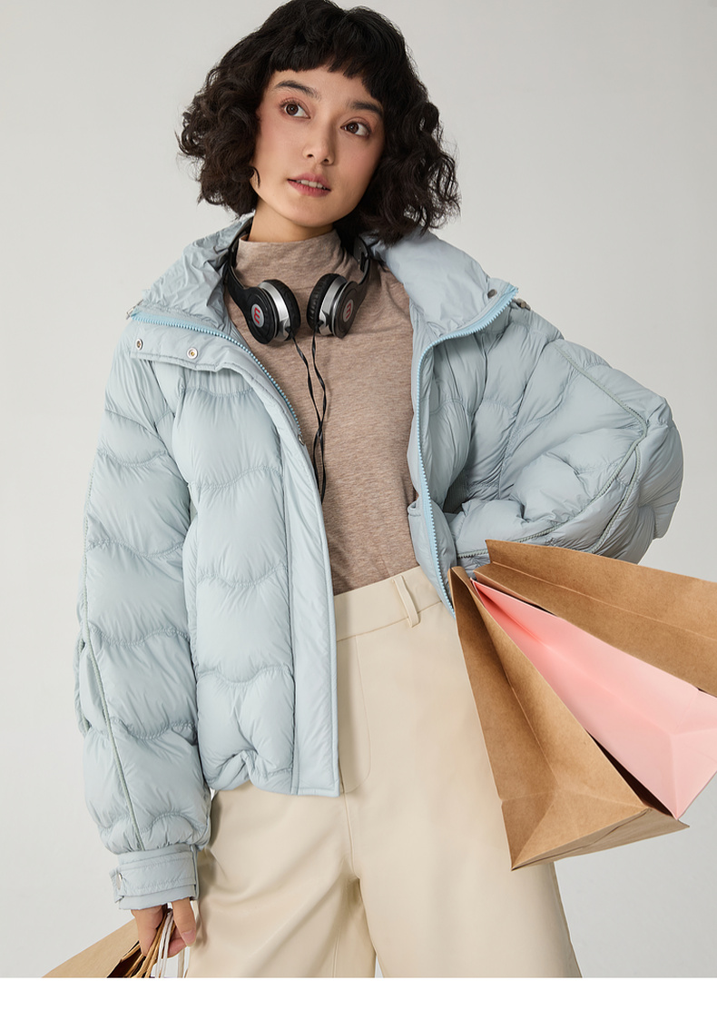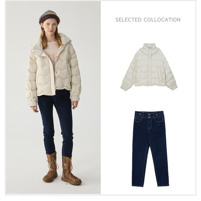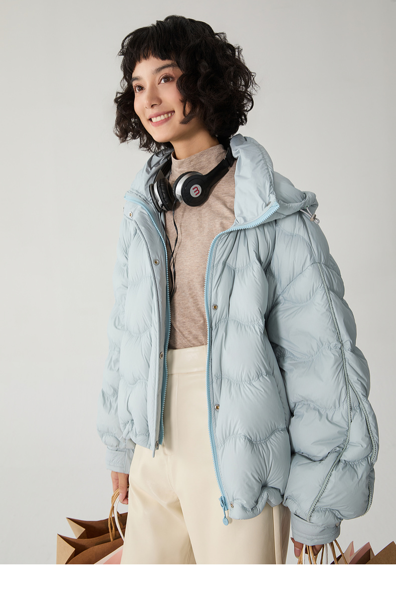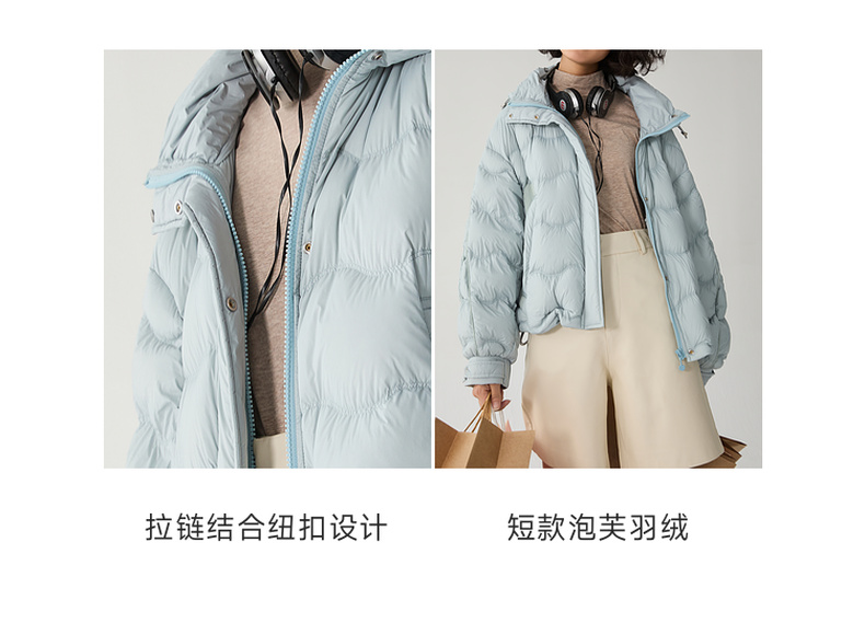 谜底连帽短款羽绒服女2024冬新品简约百搭宽松鹅绒保暖244MY1492