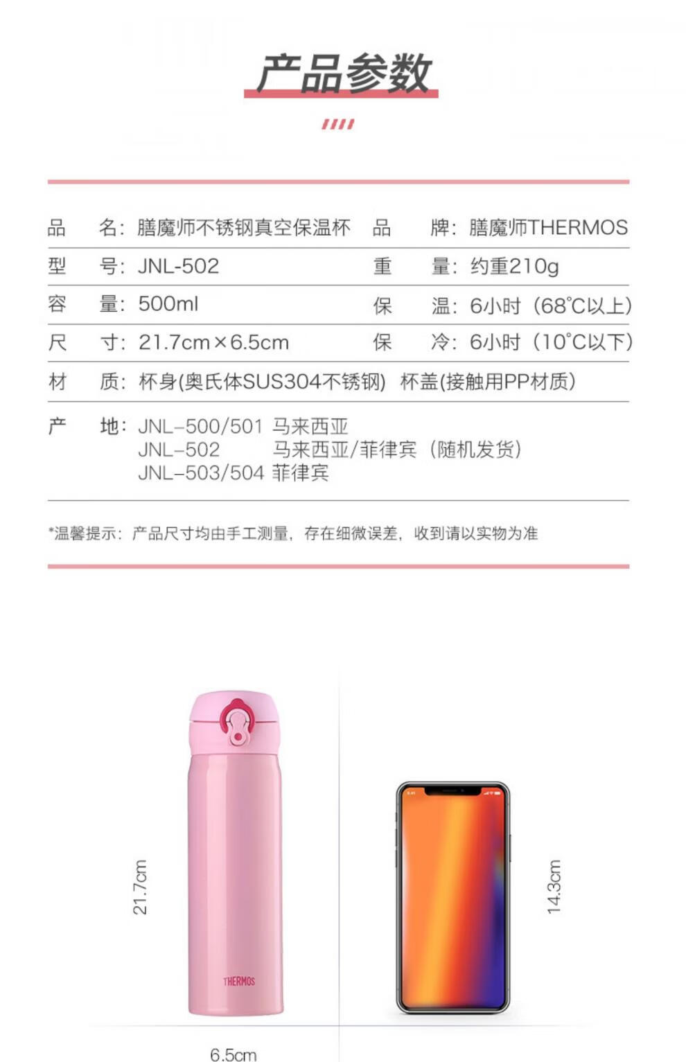 THERMOS膳魔师不锈钢保温杯JNL-502系列 500ml