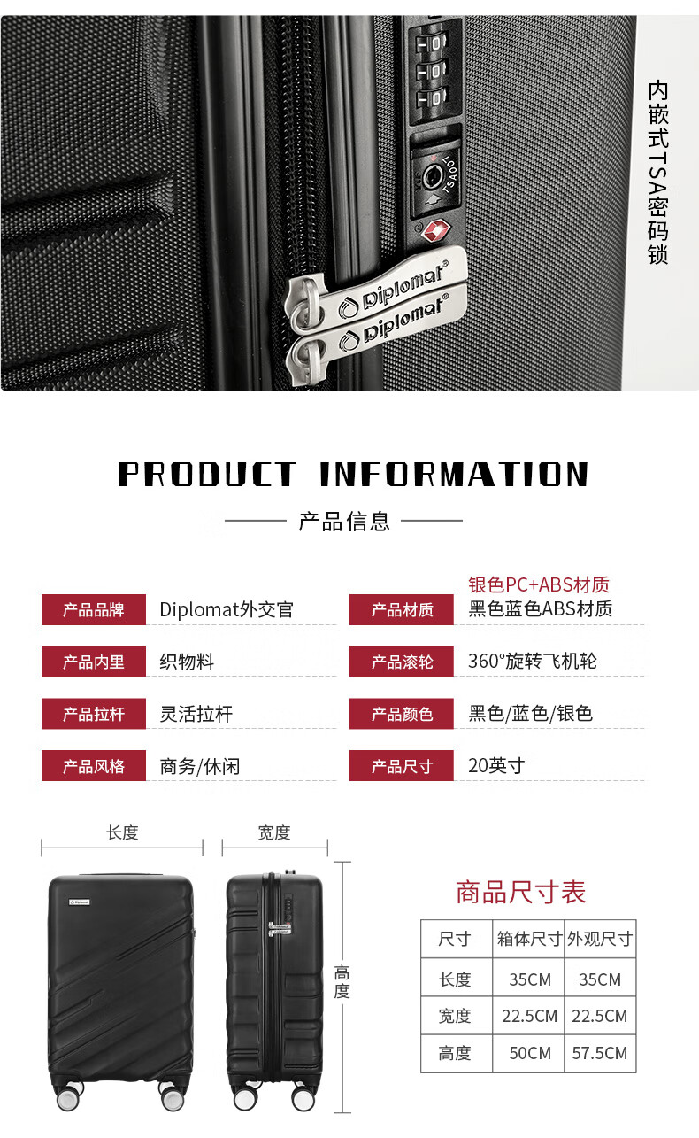 外交官 拉杆箱20英寸 DS-13059黑色