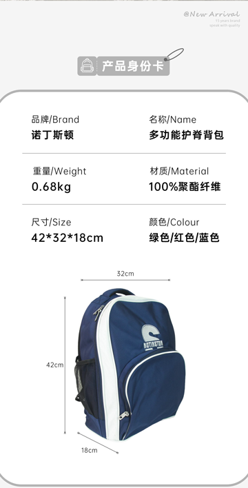 【珠海电台专属】诺丁斯顿牛津纺双肩护脊书包 拼色绣花B4大书包