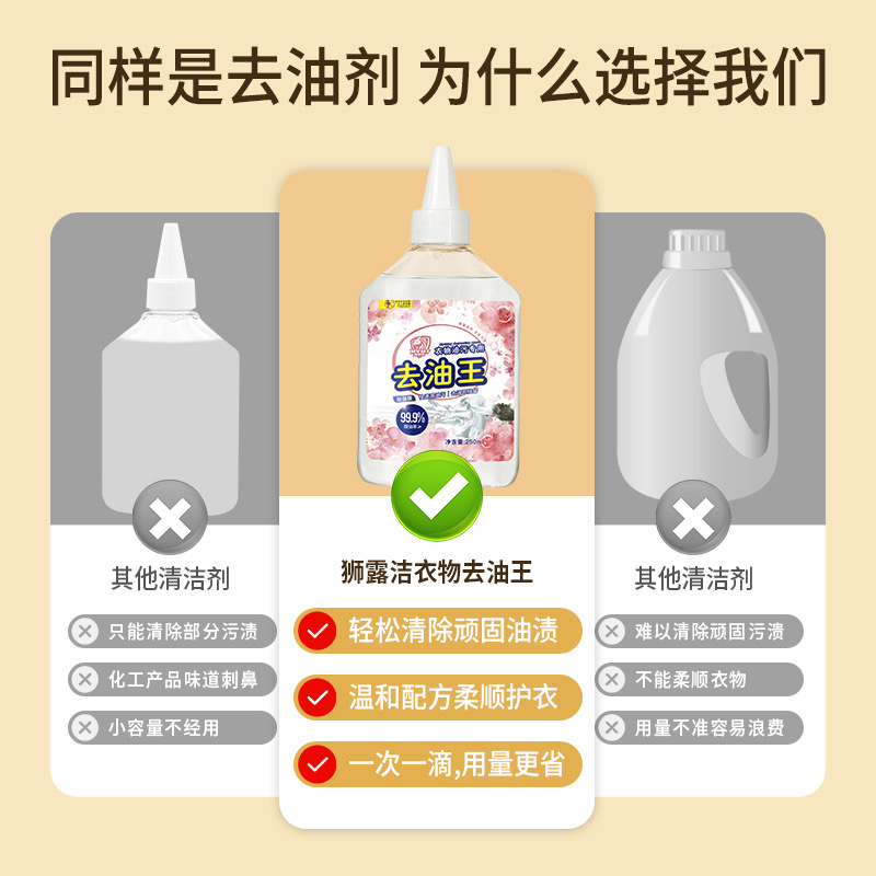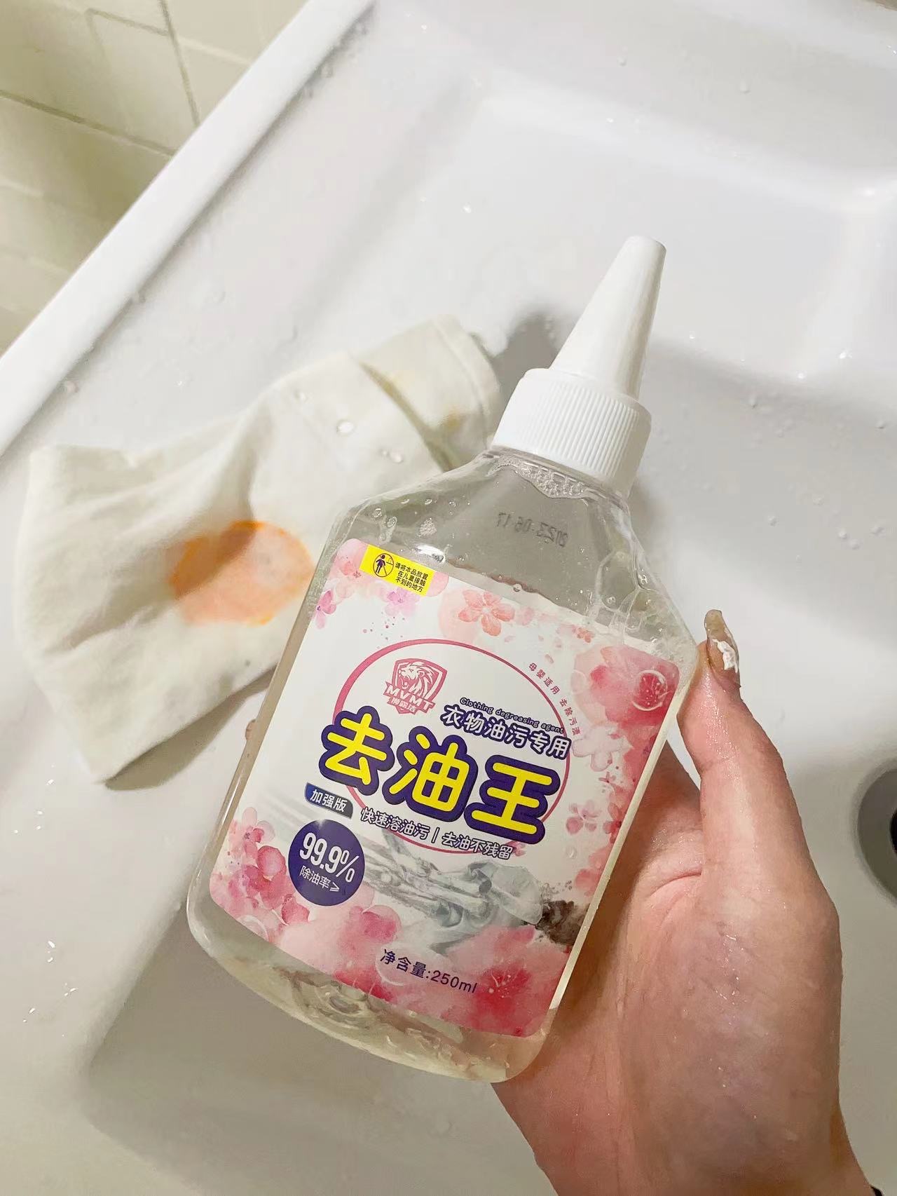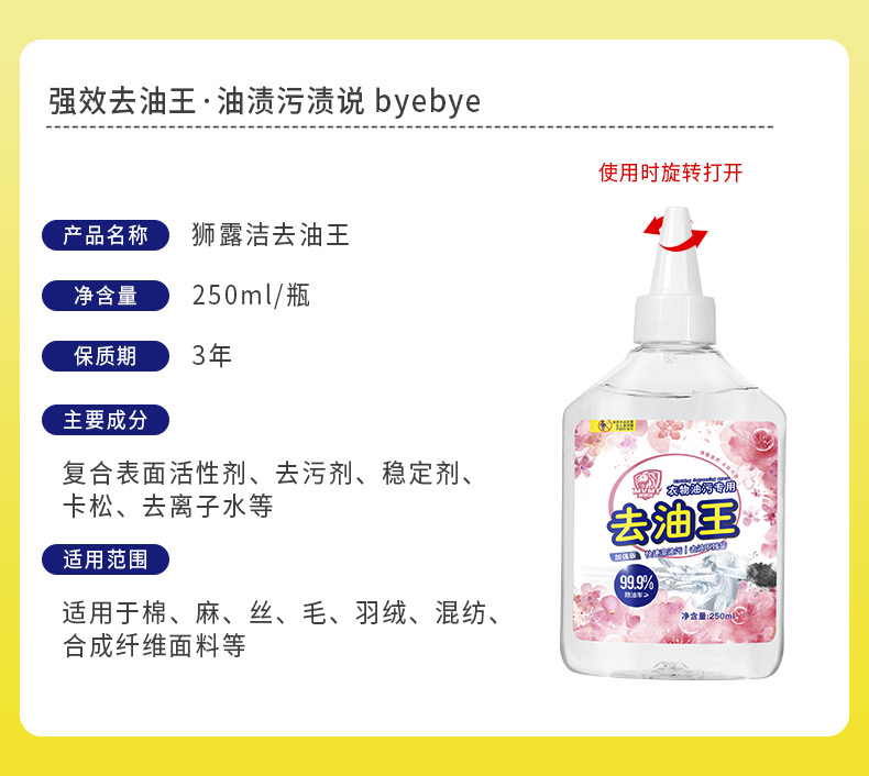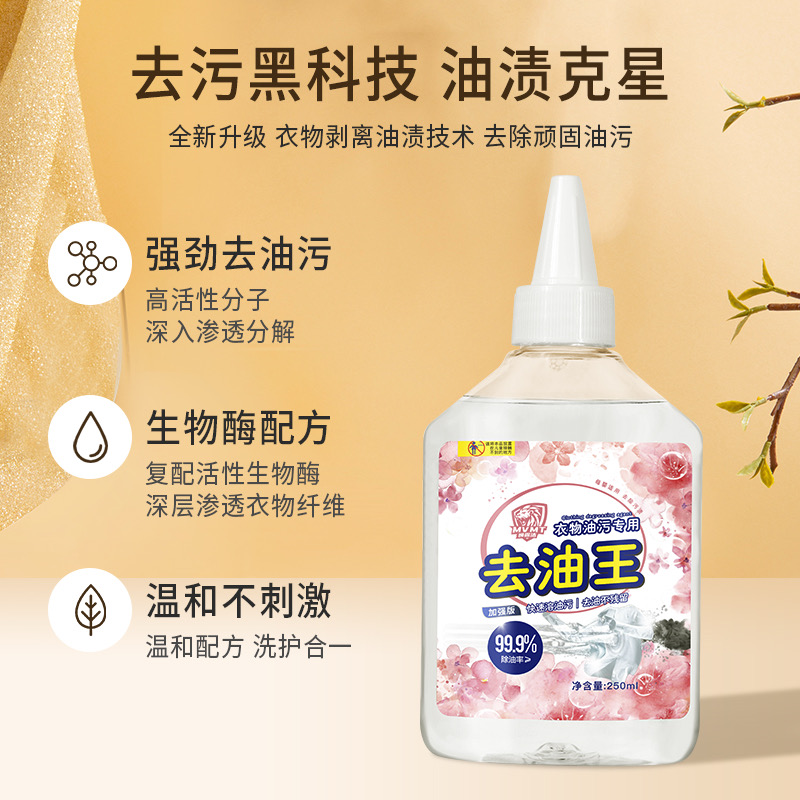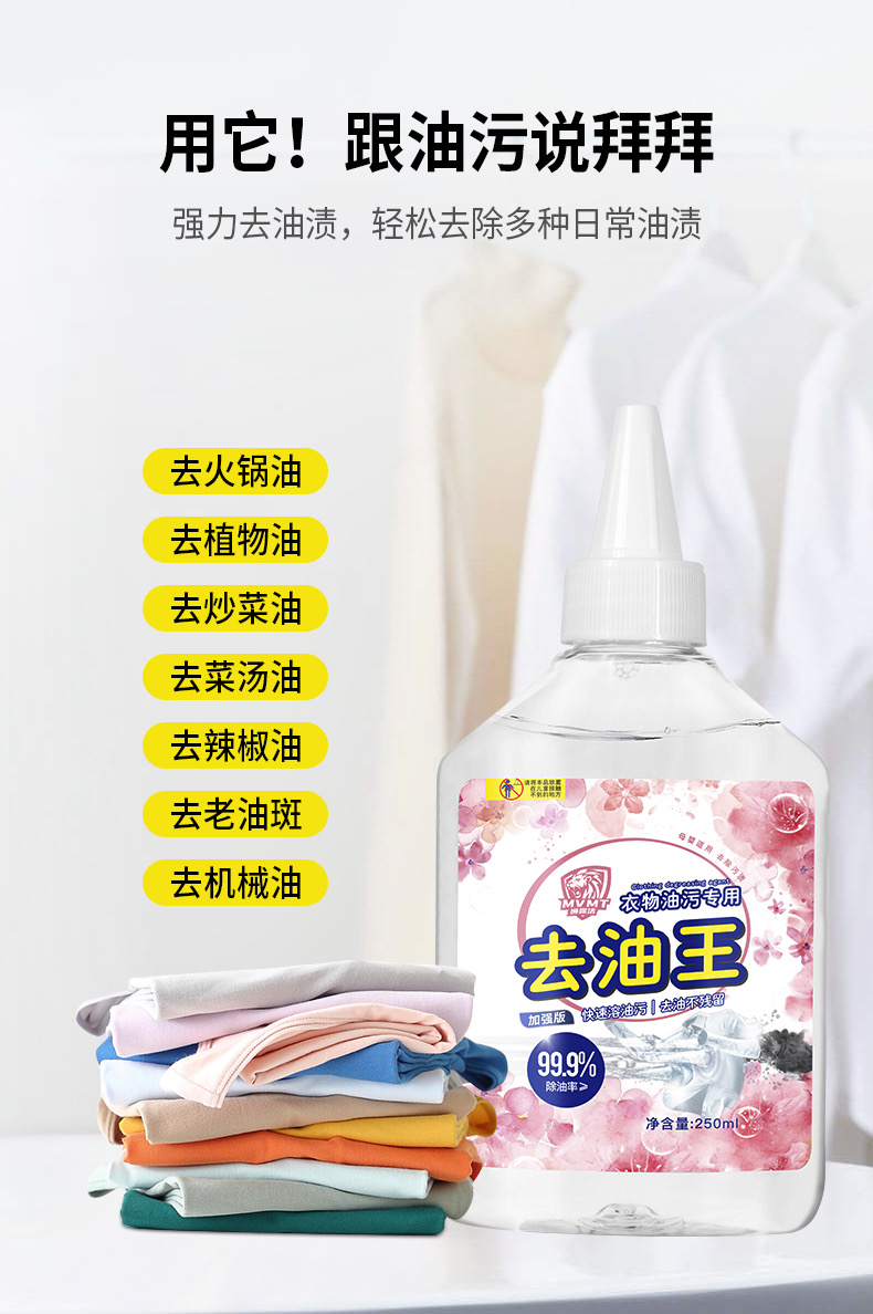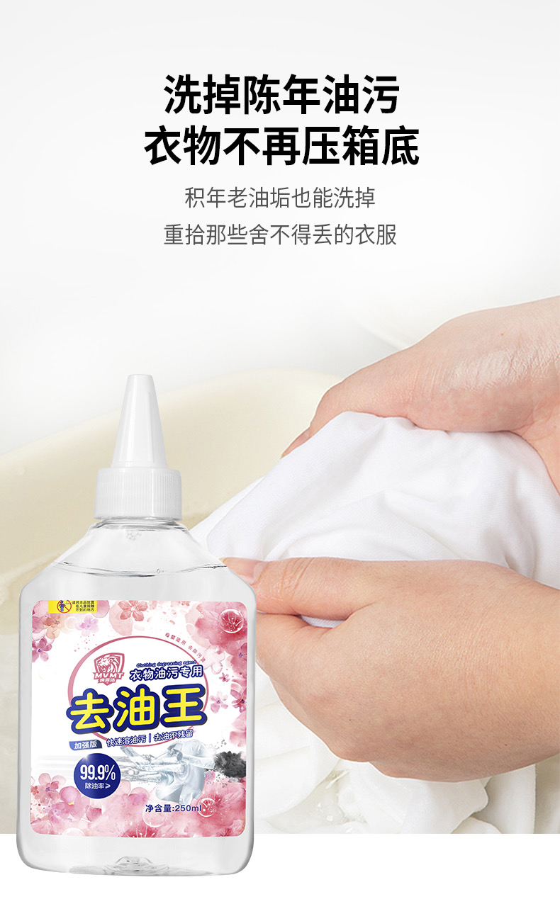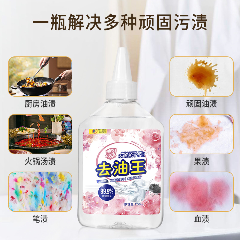 日常衣物上难免会沾上油渍、污渍、家中要必备一款去除油渍的洗液