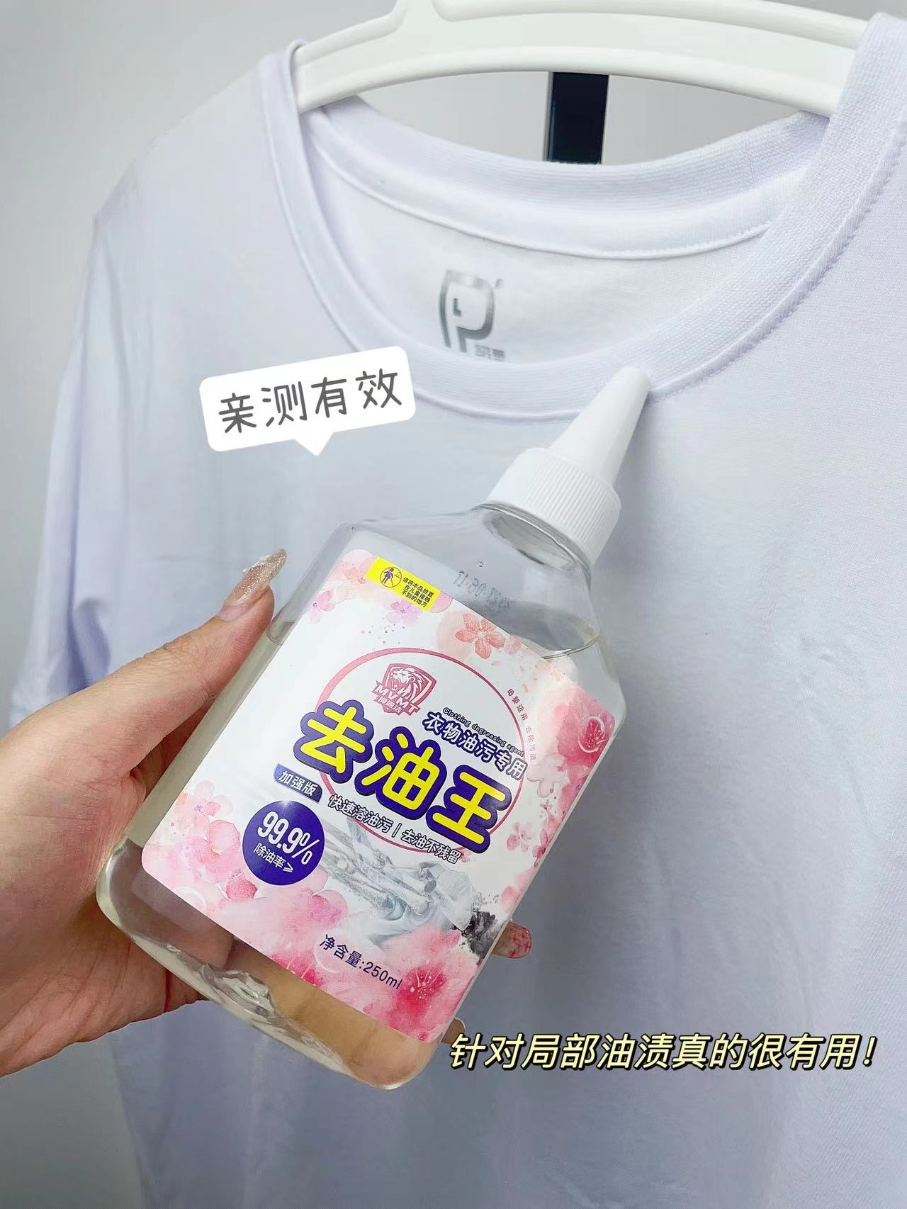 针对局部油渍真的很有用,陈年油渍也能洗掉!还有奶渍、果渍都可以!