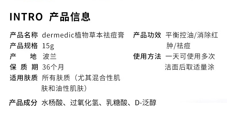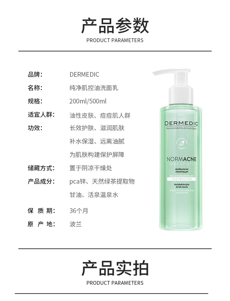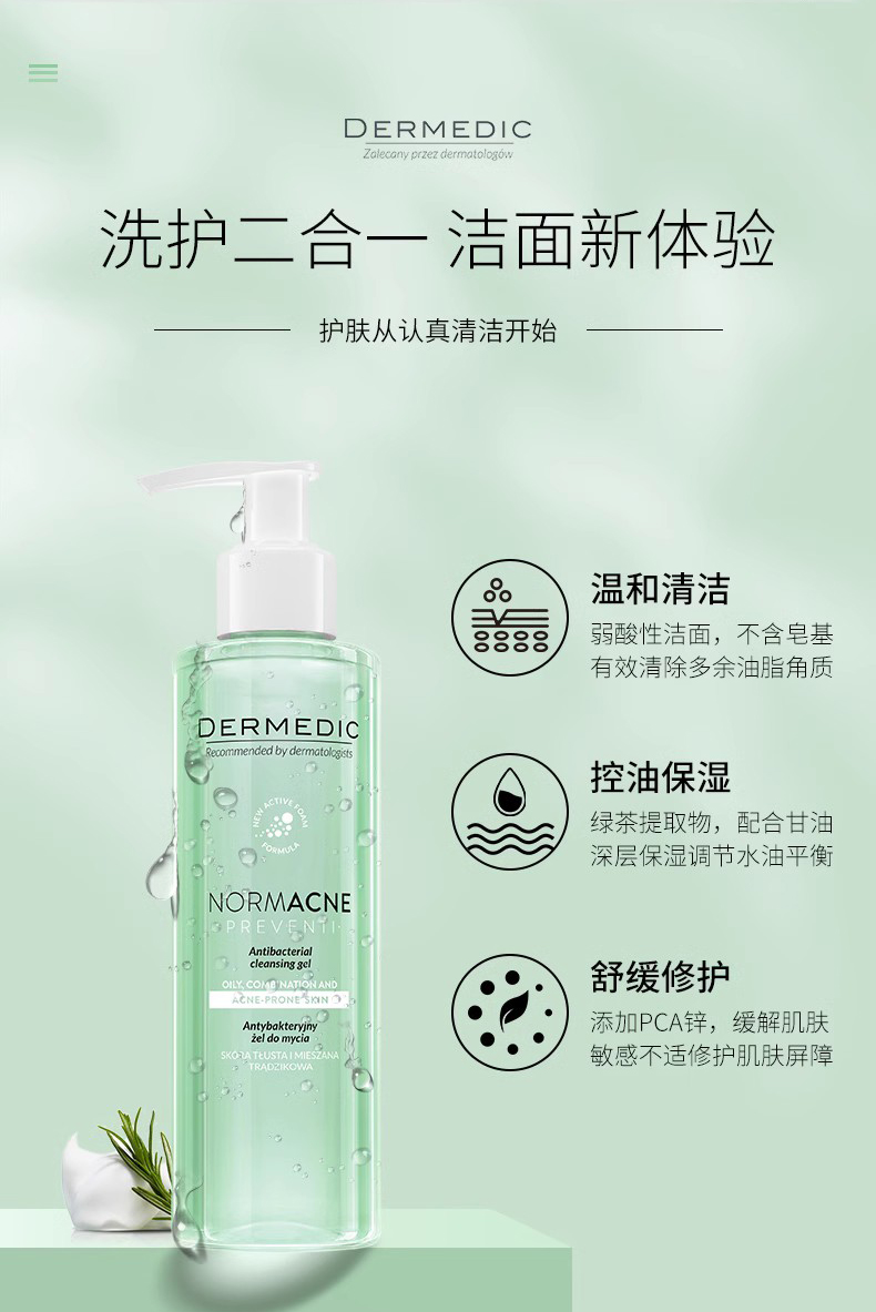 DERMEDIC 祛痘精华/控油洁面凝胶/祛痘急救/去红血丝面霜/红血丝洗面奶