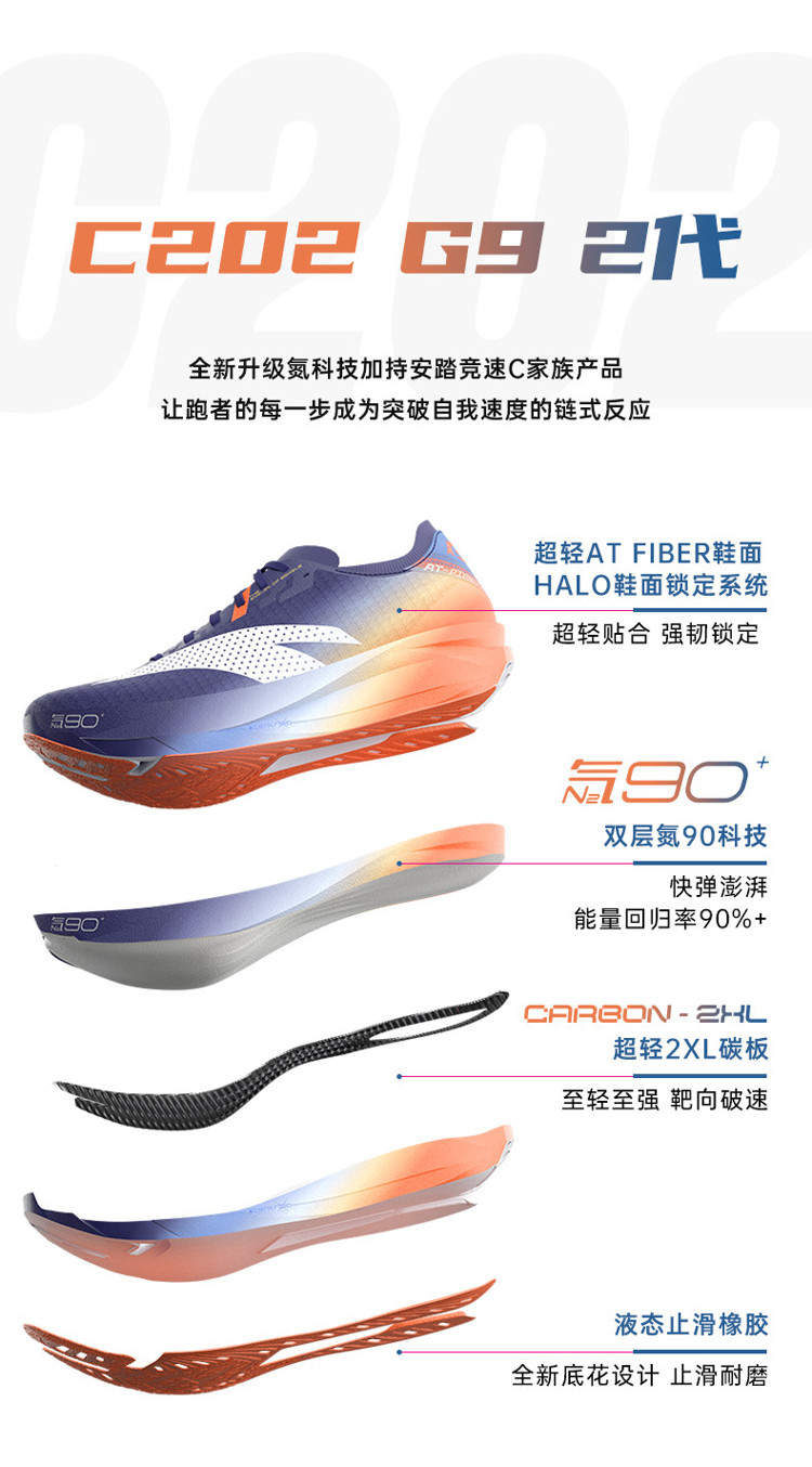 安踏C202 G9 2代丨专业竞速马拉松跑鞋男减震耐磨运动鞋112615573