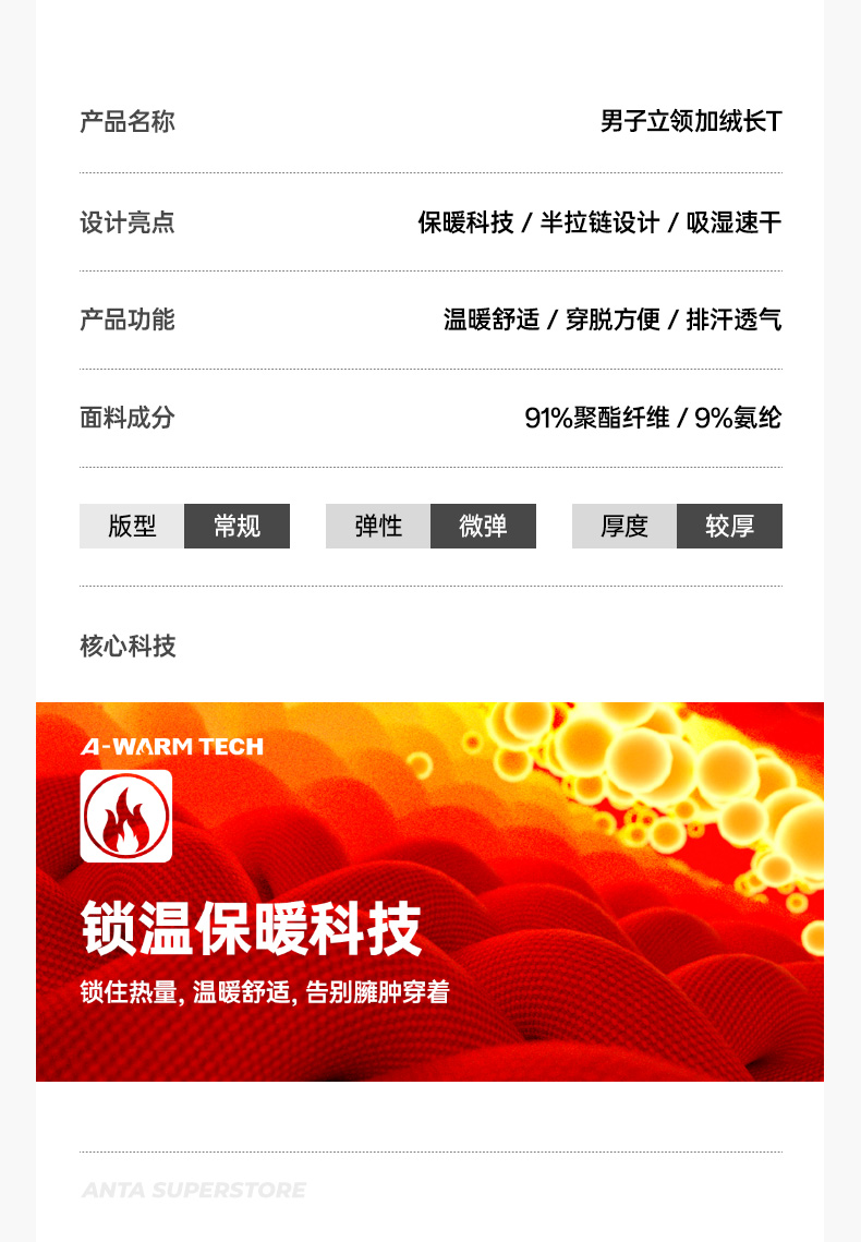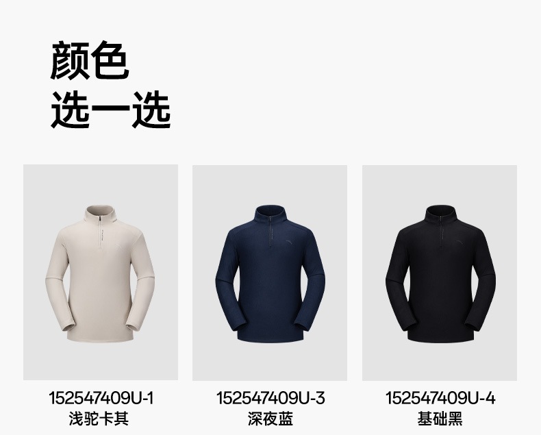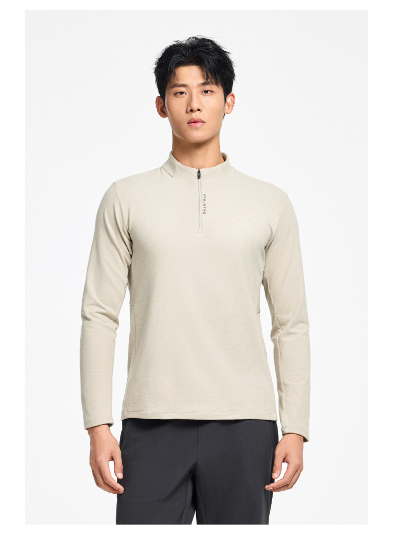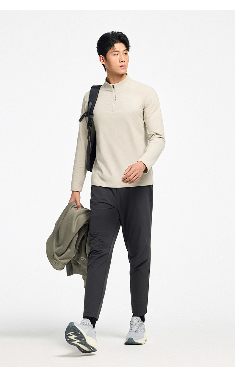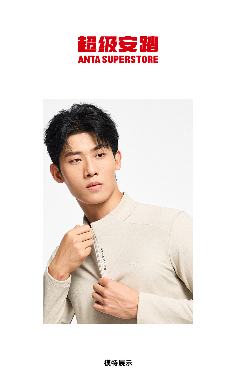 超级安踏甲壳盾抗菌长T男秋冬加绒半拉链卫衣通勤内搭152547408U