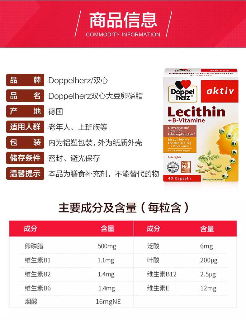 【礼想心动】Doppel Herz 双心 大豆卵磷脂软胶囊 40颗