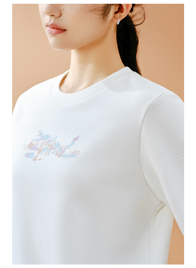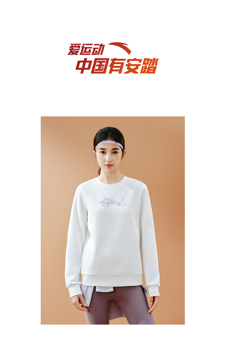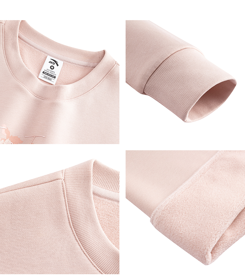 安踏运动卫衣女冬季新款宽松百搭圆领套头加绒长袖上衣162547718N