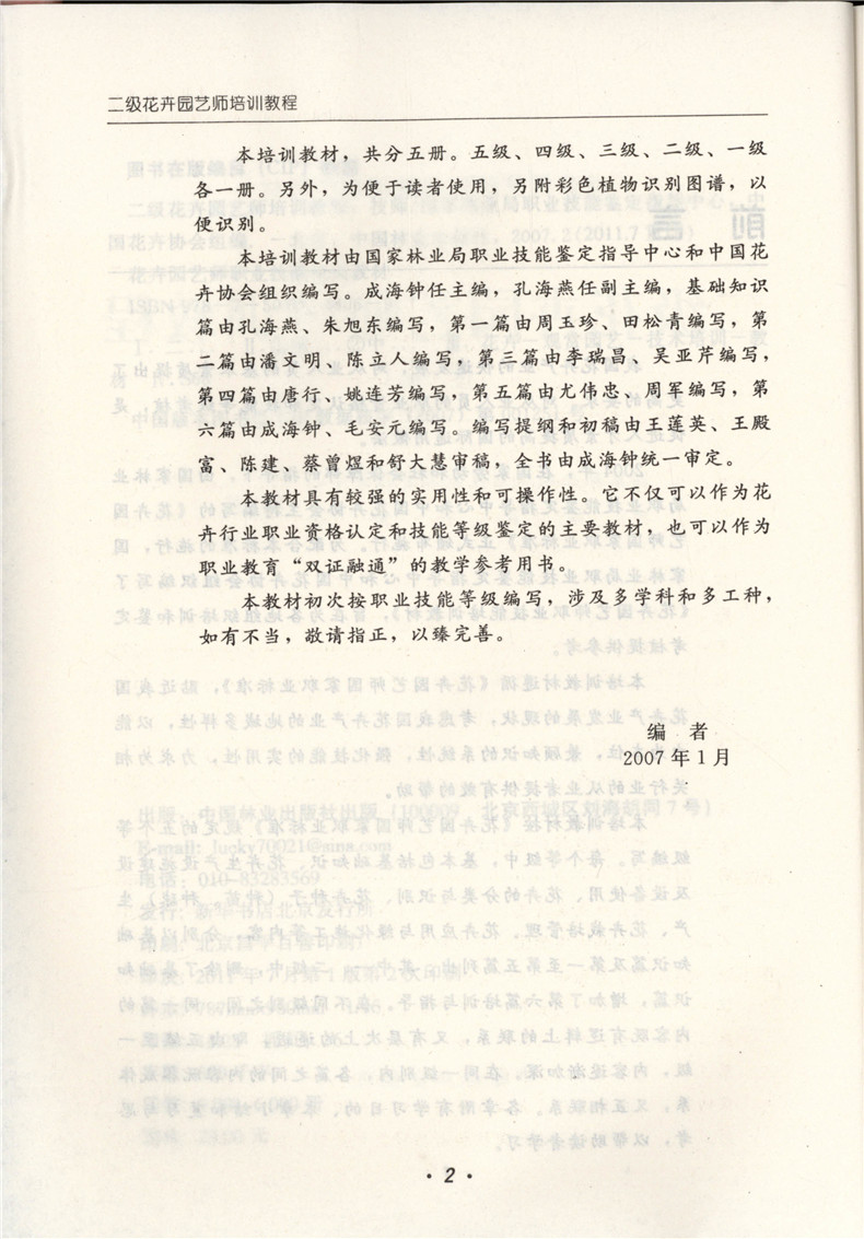 二级花卉园艺师培训教程 (技师) 4606 花卉园艺师职业技能培训教材 基础知识植物保护分类与识别花卉栽培与管理病虫害防治培训指导