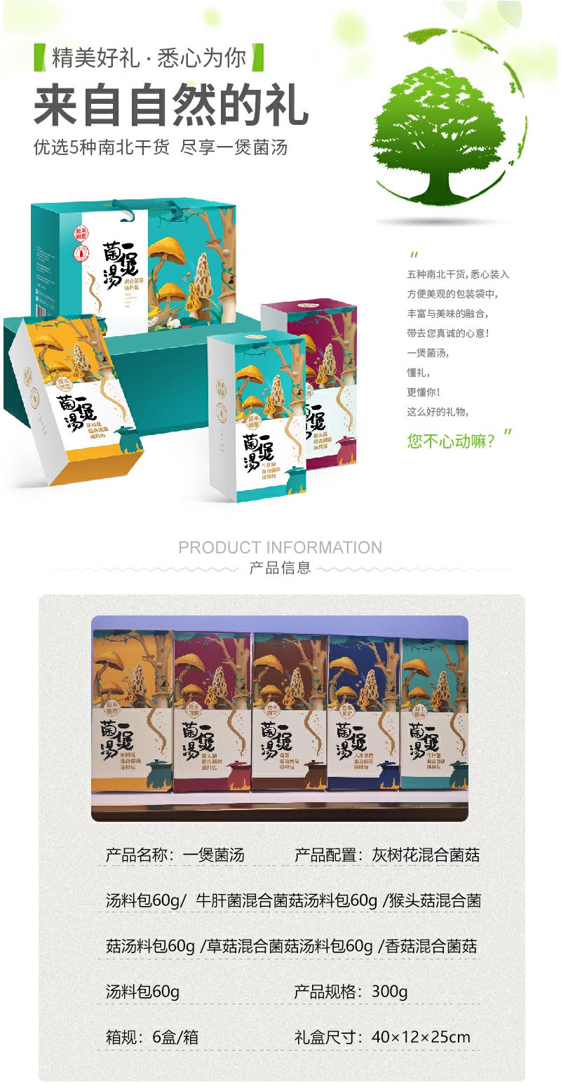 半亩良田半亩川 一煲菌汤礼盒300g 5种菌汤包混合料包