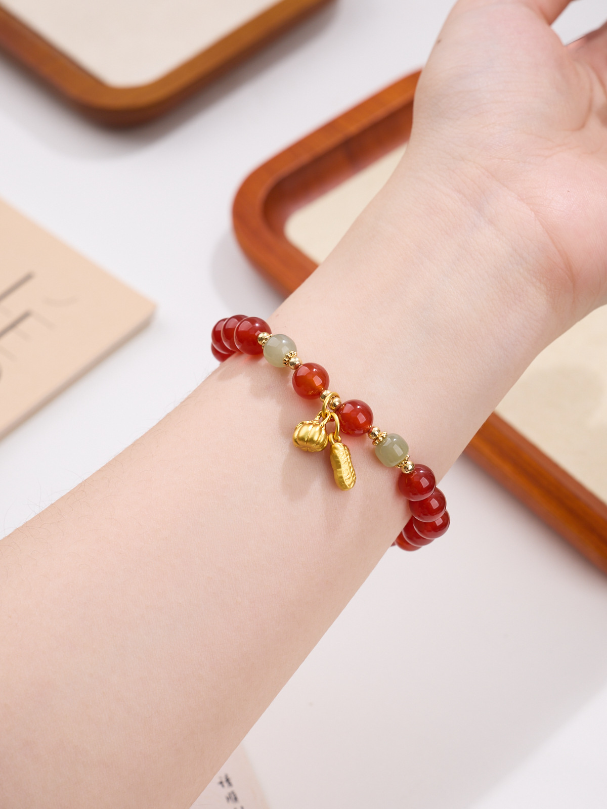 【材质】红玛瑙、和田玉