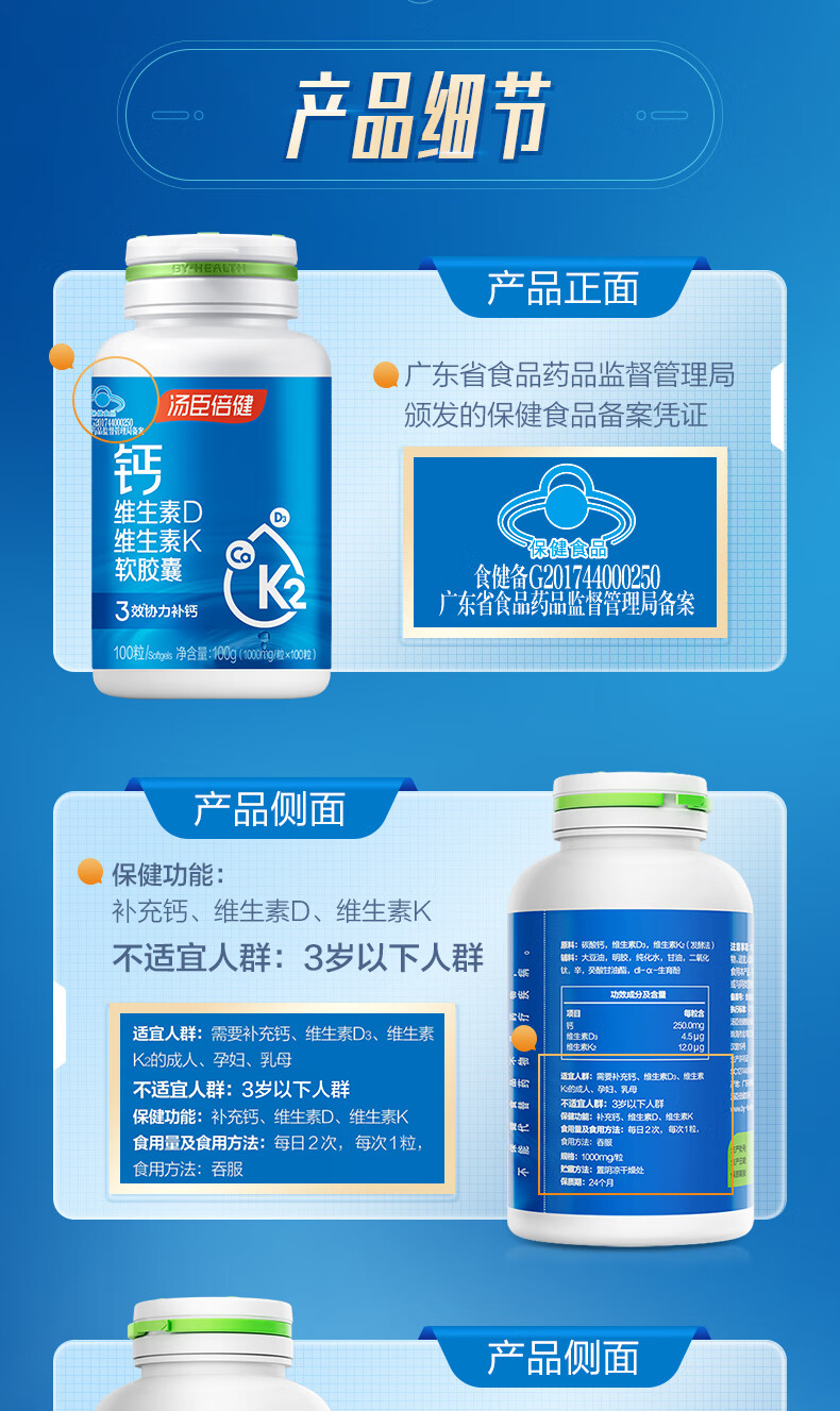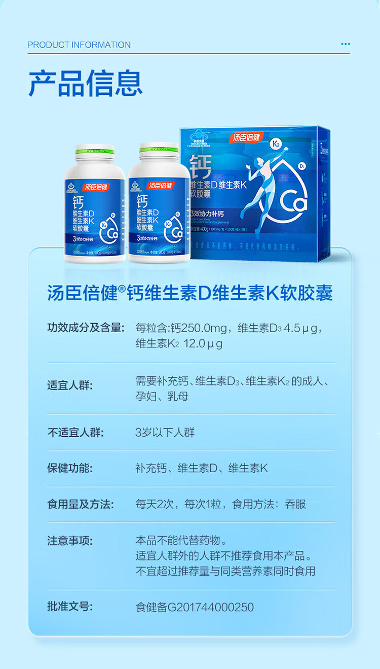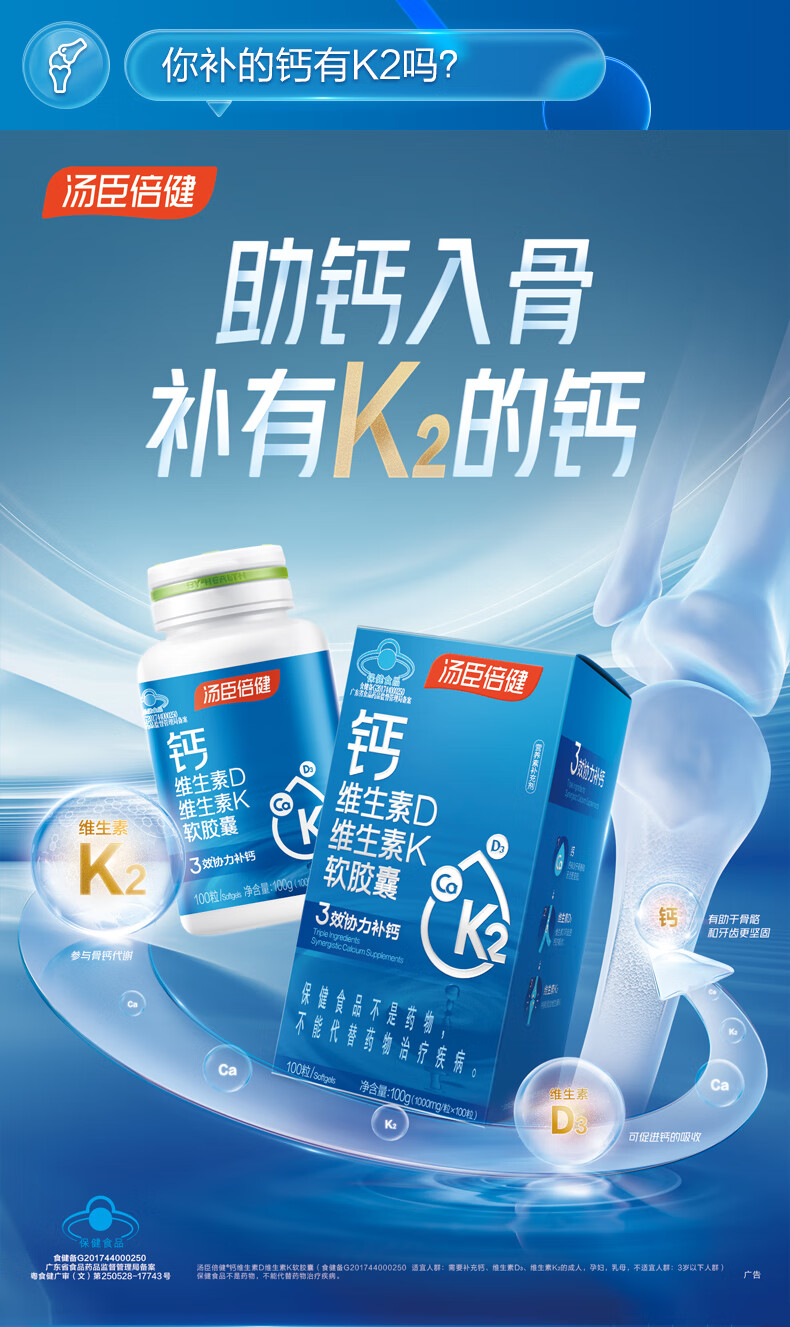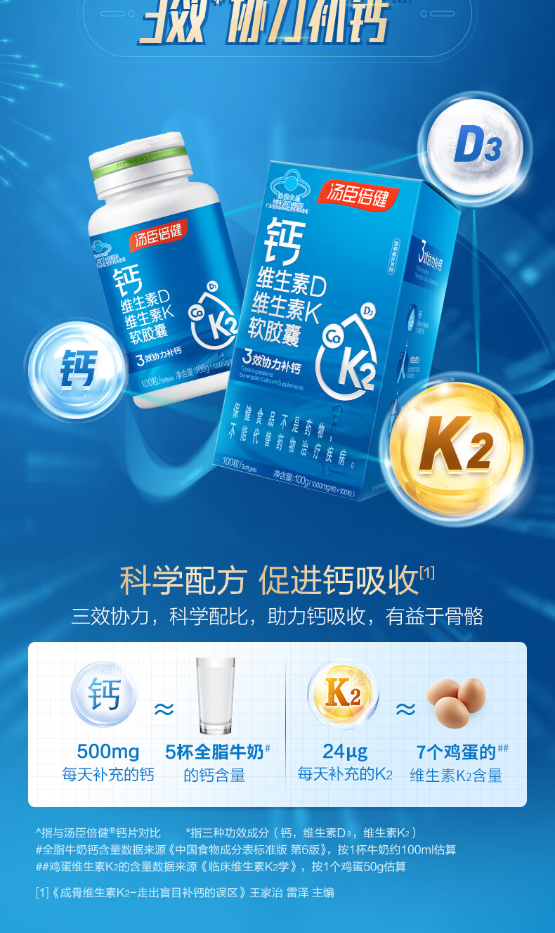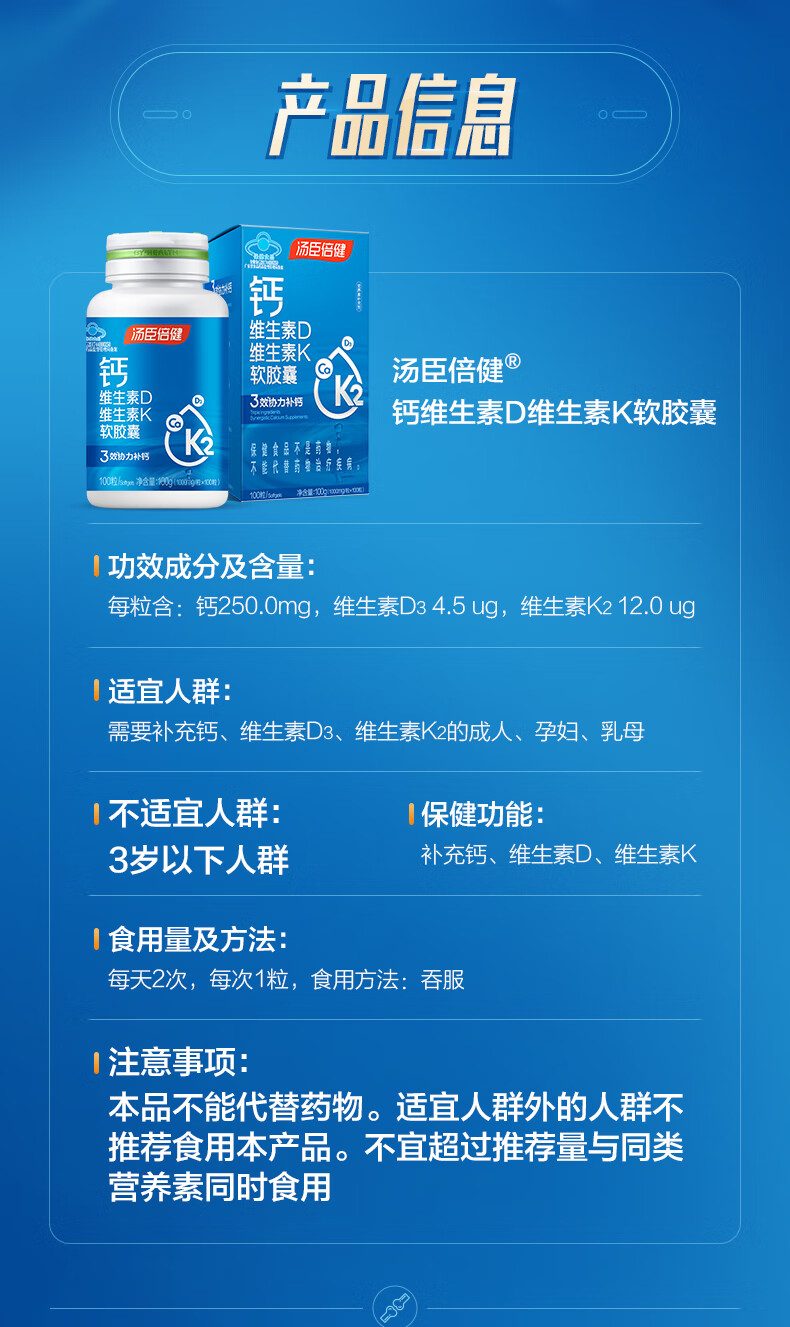 汤臣倍健 钙维生素D维生素K软胶囊(100粒)