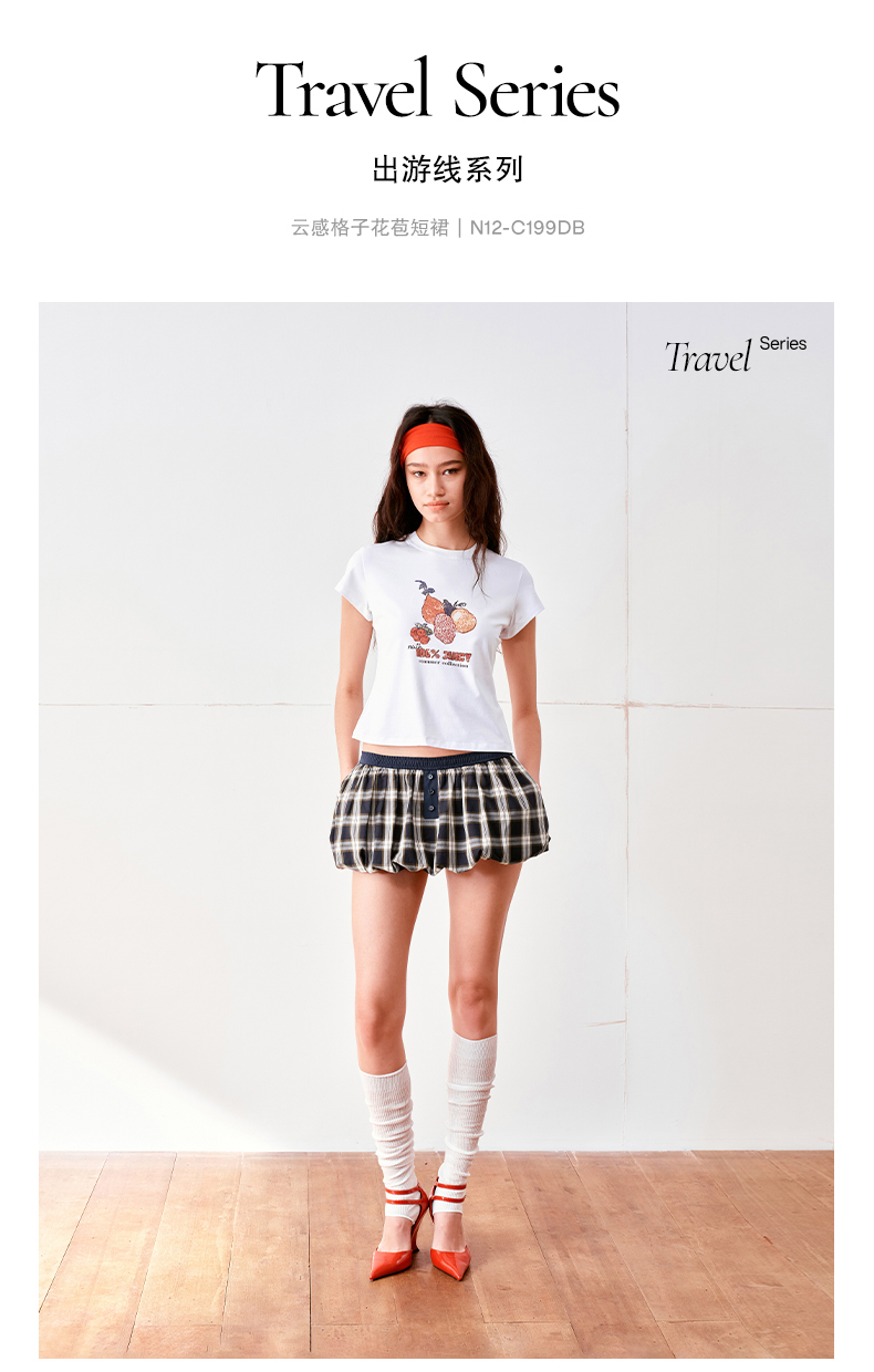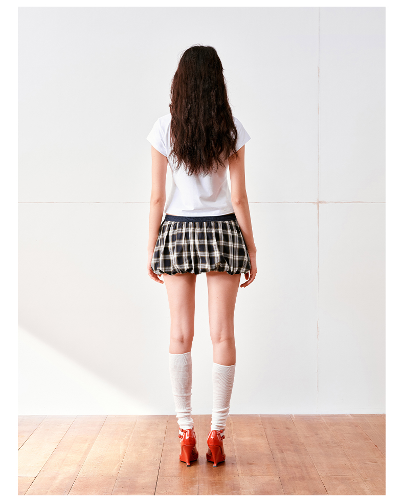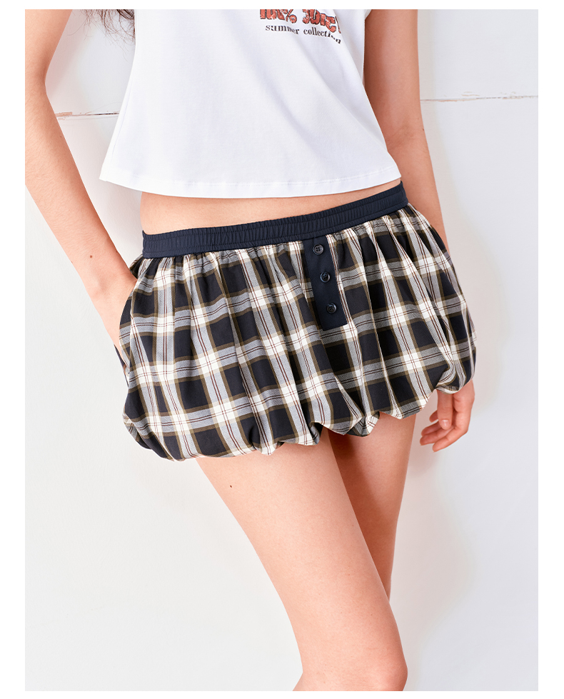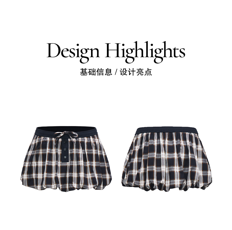 NUTH云感格子蓬蓬花苞裙短裙mini裙裤女(带安全裤)