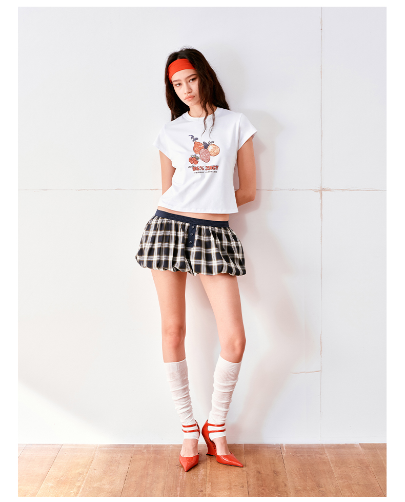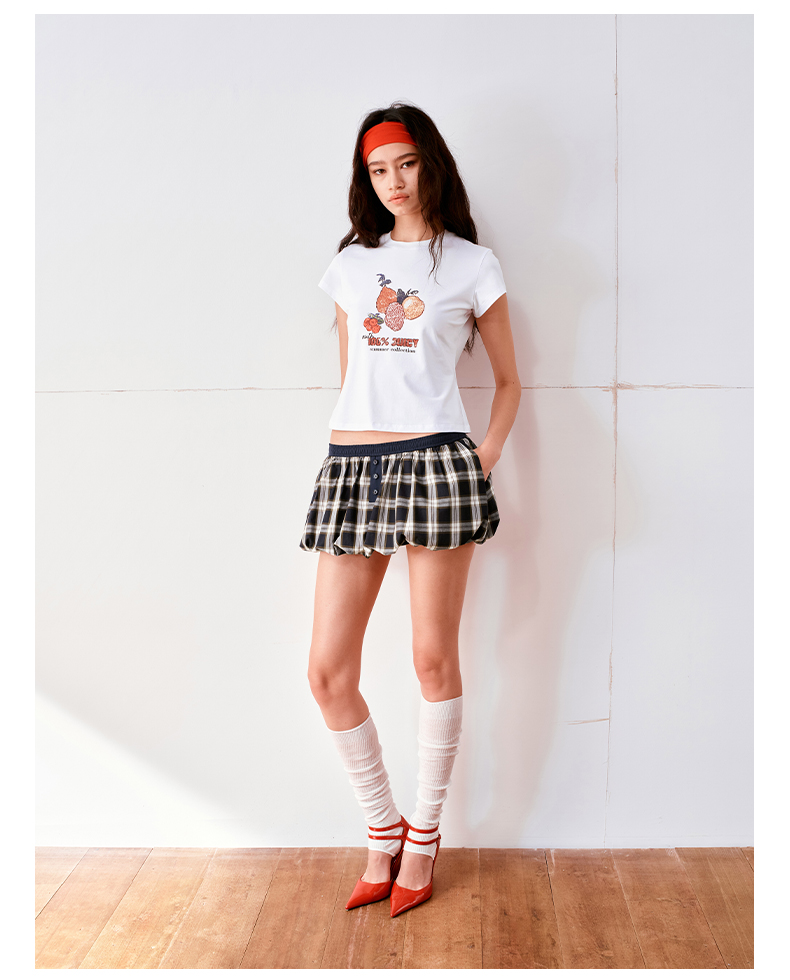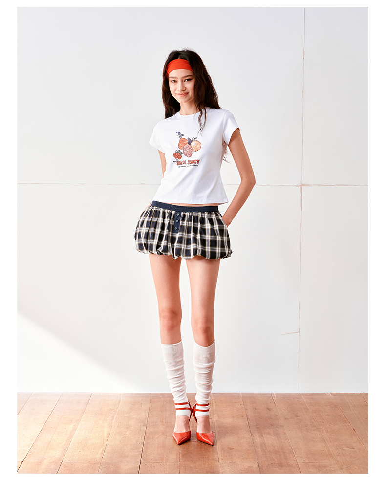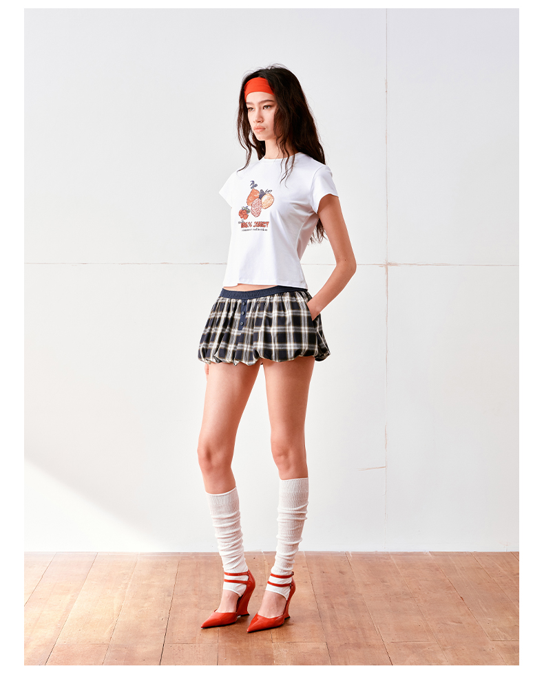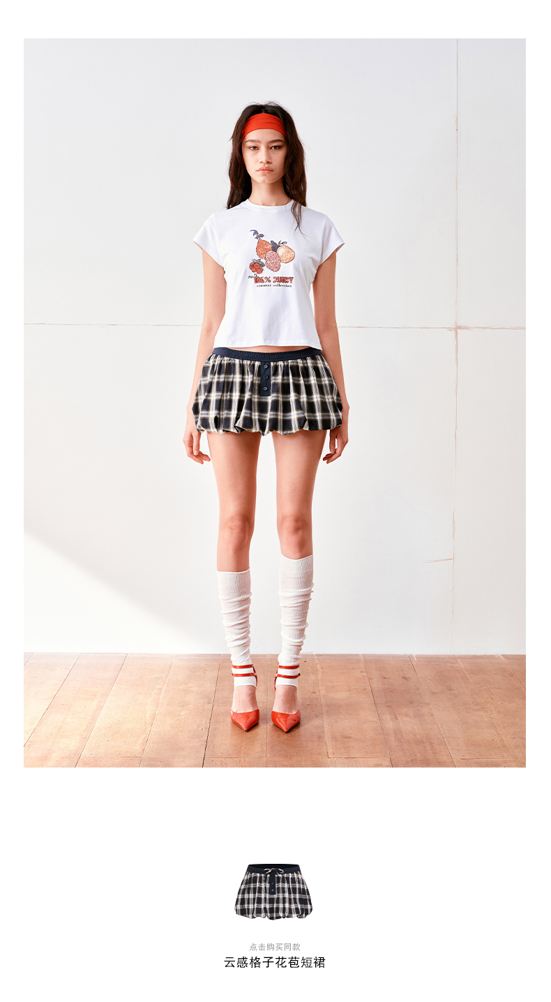 NUTH云感格子蓬蓬花苞裙短裙mini裙裤女(带安全裤)
