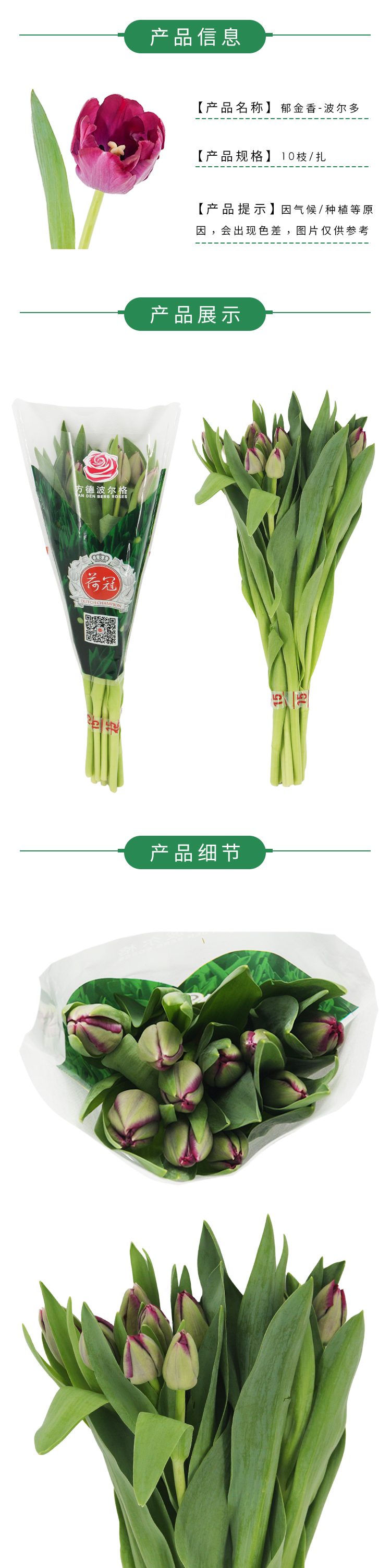 【单瓣郁金香】 波尔多 10枝一扎