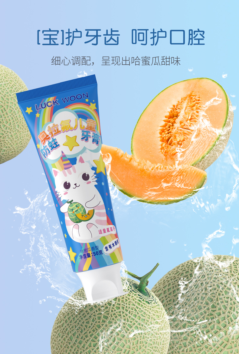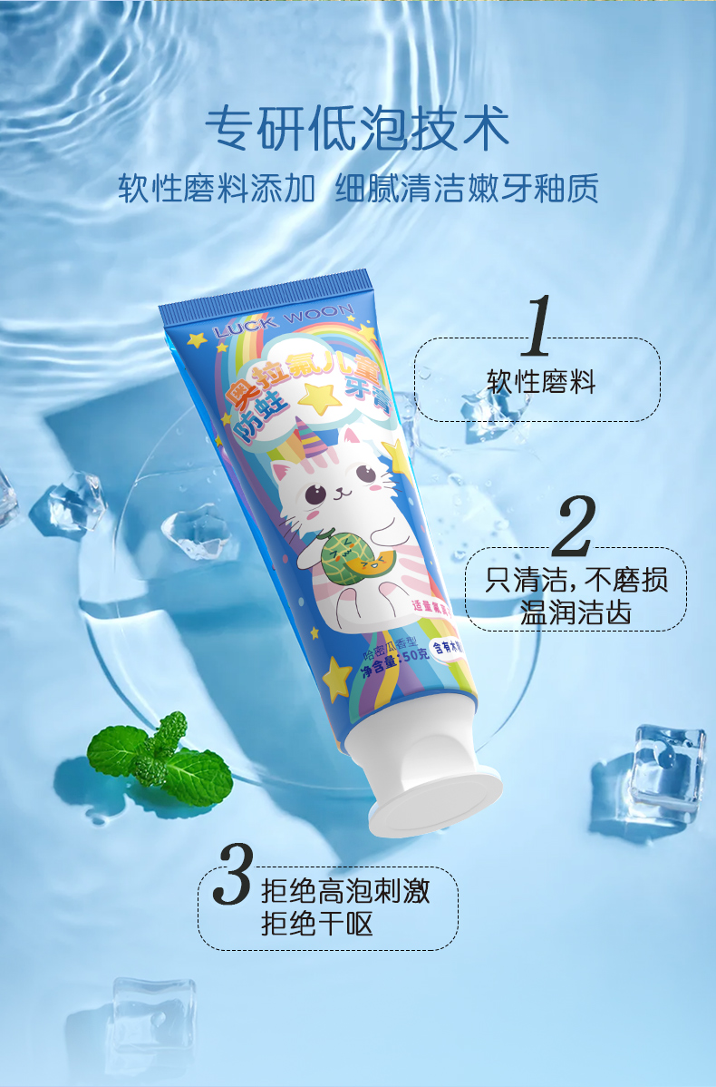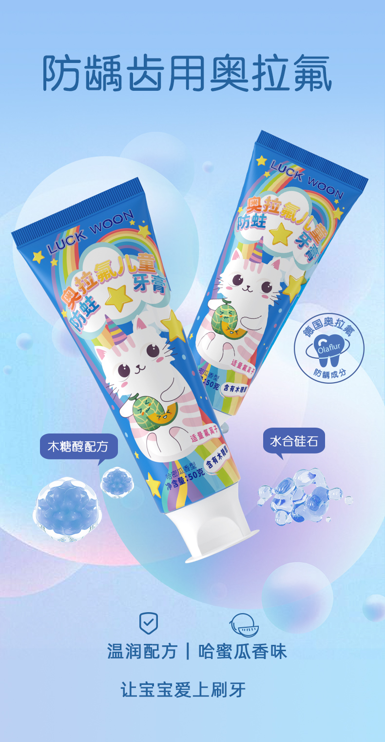 luckwoon奥拉氟儿童防蛀牙膏2-12岁含氟牙膏