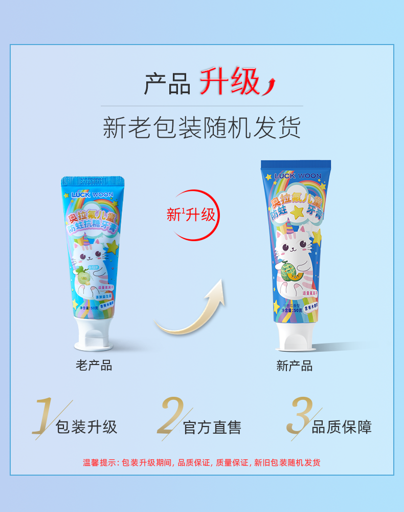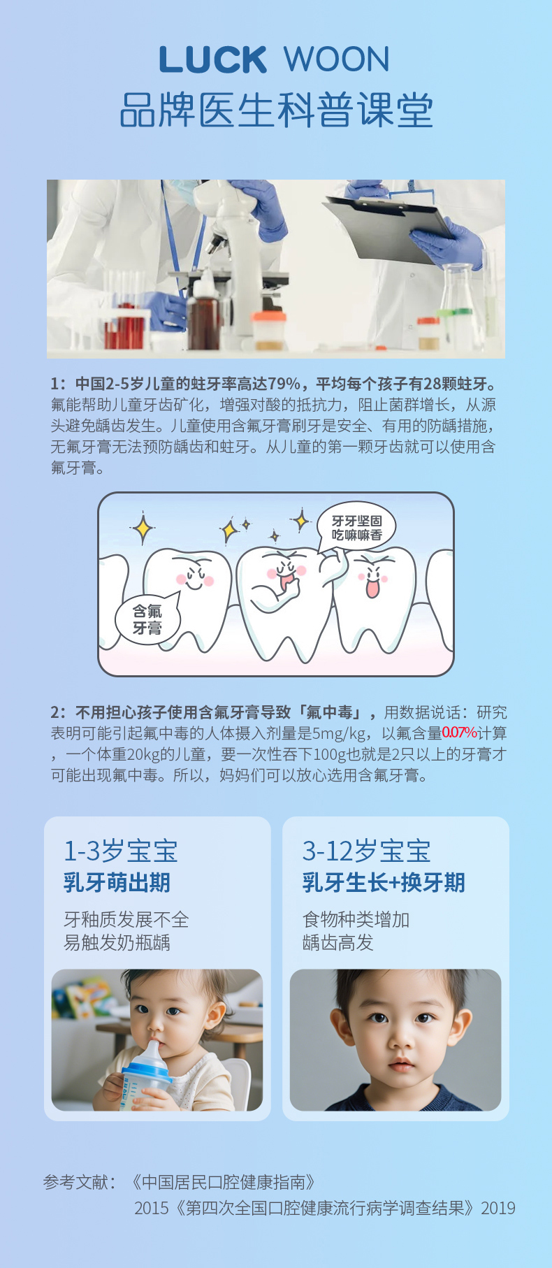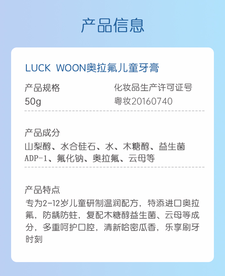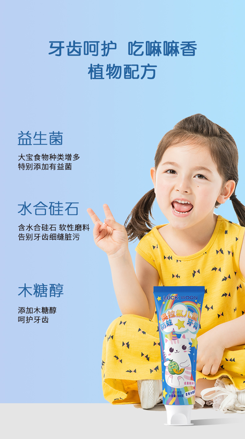 luckwoon奥拉氟儿童防蛀牙膏2-12岁含氟牙膏
