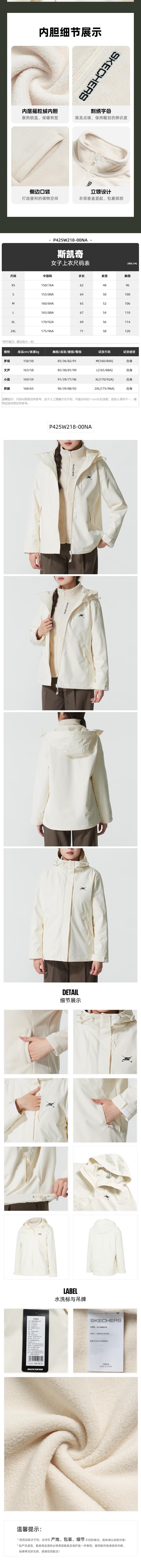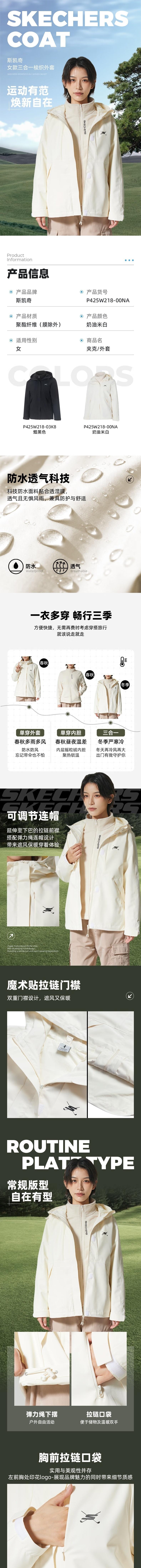 Skechers斯凯奇 女三合一夹克 P425W218-00NA
