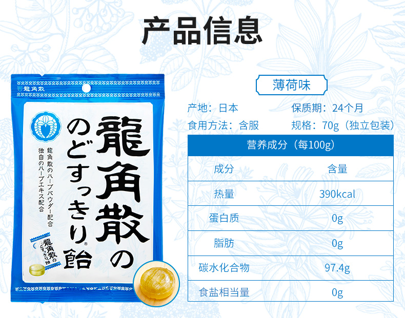 龙角散蜂蜜柠檬生姜味润喉糖69.3g/包