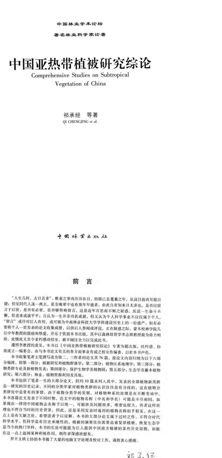 中国亚热带植被研究综论 6796 中国林业出版社