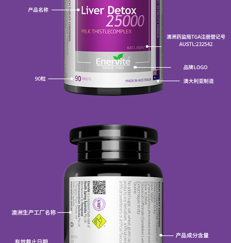EnerVite 澳乐维他 天然本草瘦肝护肝片90粒/瓶