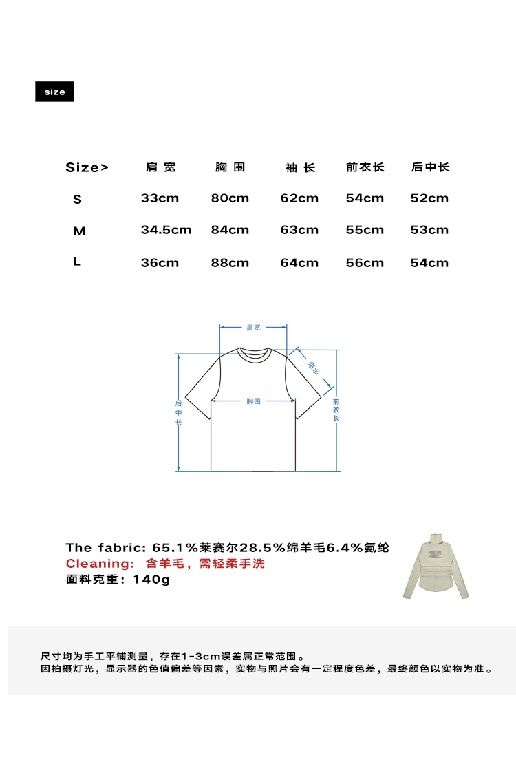 CryingCenter 渐变点点logo羊毛高领收腰打底长袖tee 哭喊中心