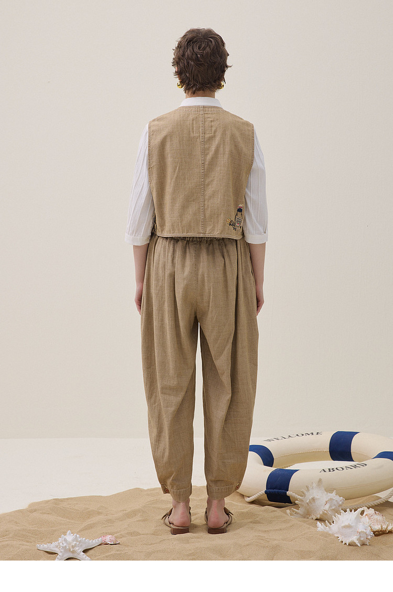 谜底工装阔腿裤长裤2026年夏季新品松紧腰裤脚可调节女262MK0623