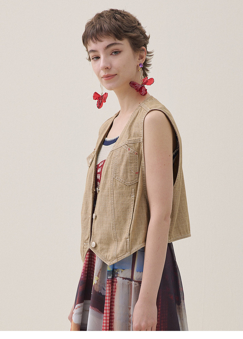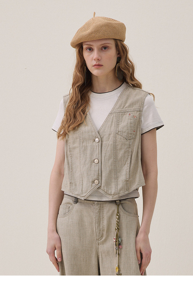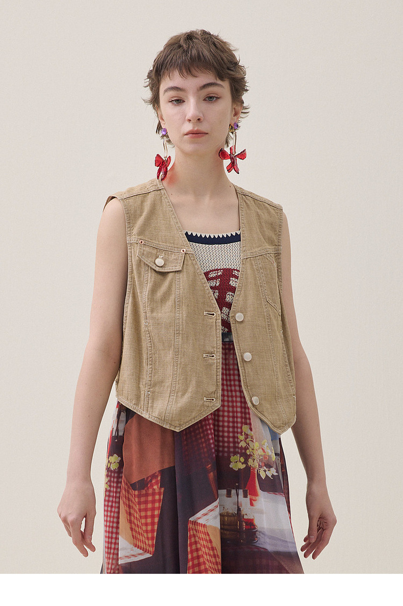 谜底牛仔马甲2026夏新品气质百搭复古洗水造型感马夹女262MM0604