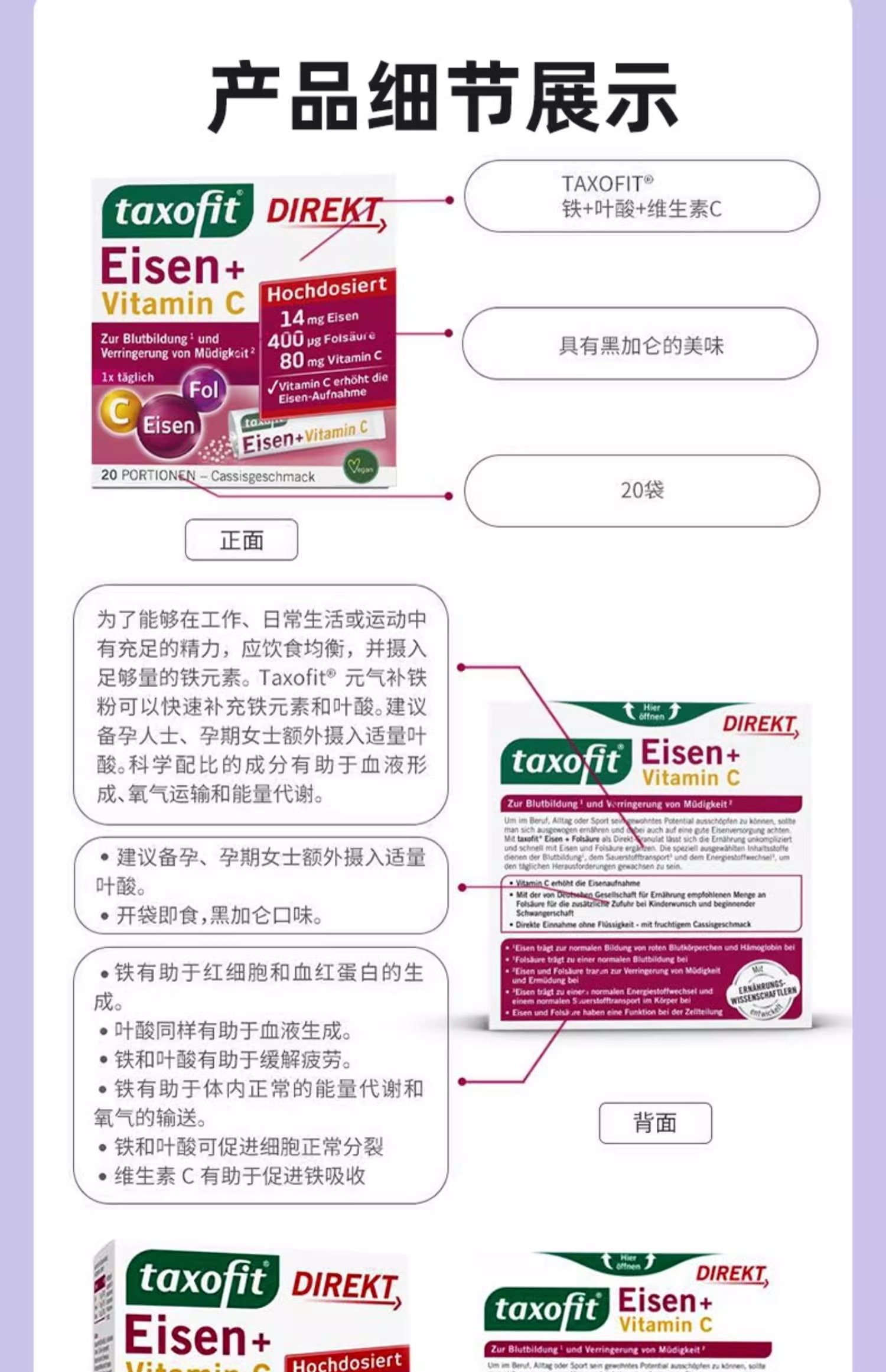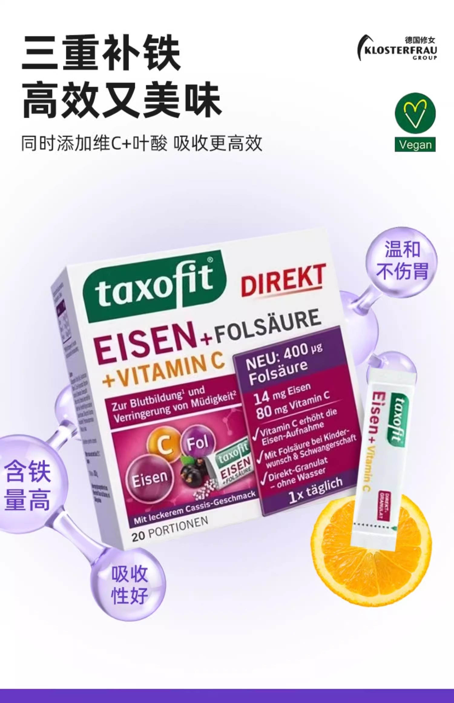 【保税仓】德国Klosterfrau修女Taxofit补铁剂20袋