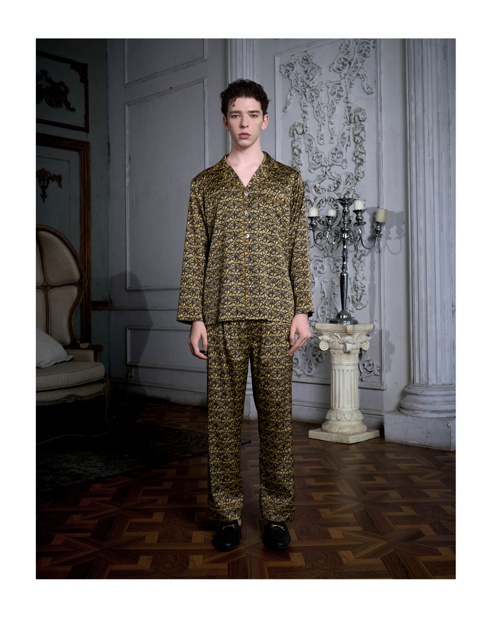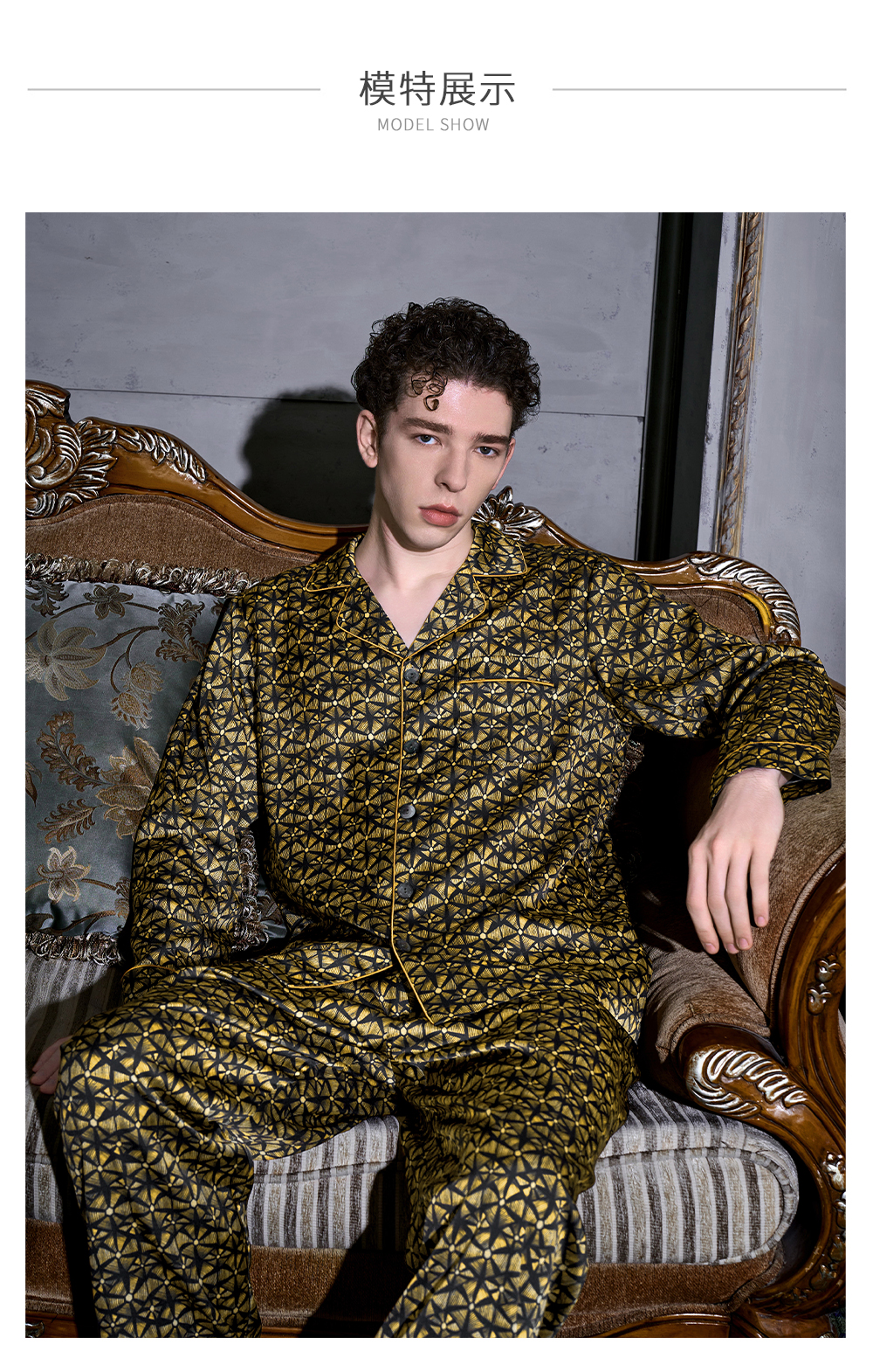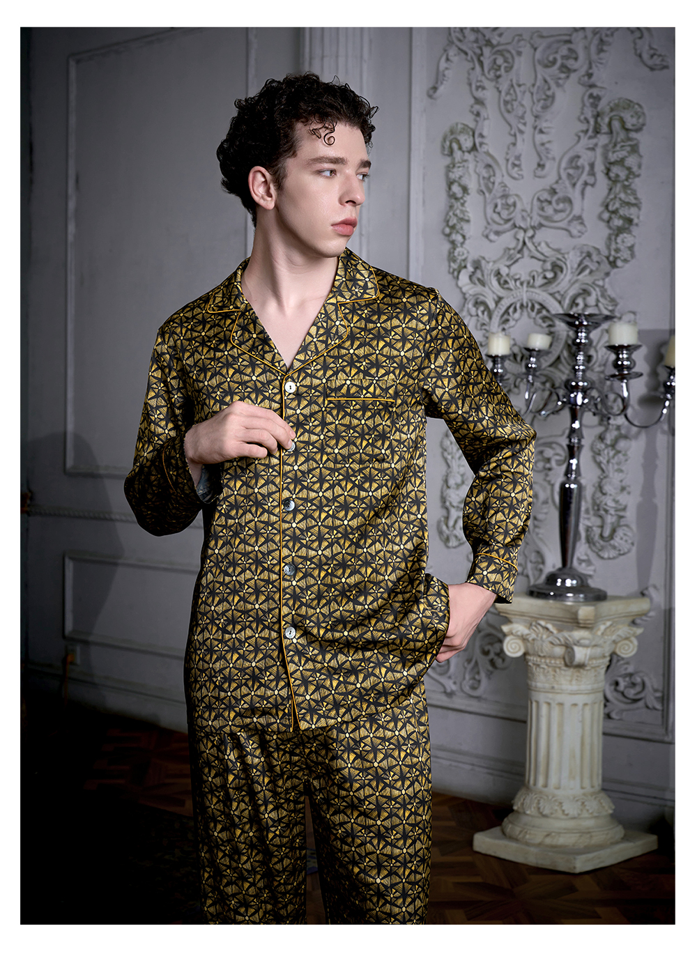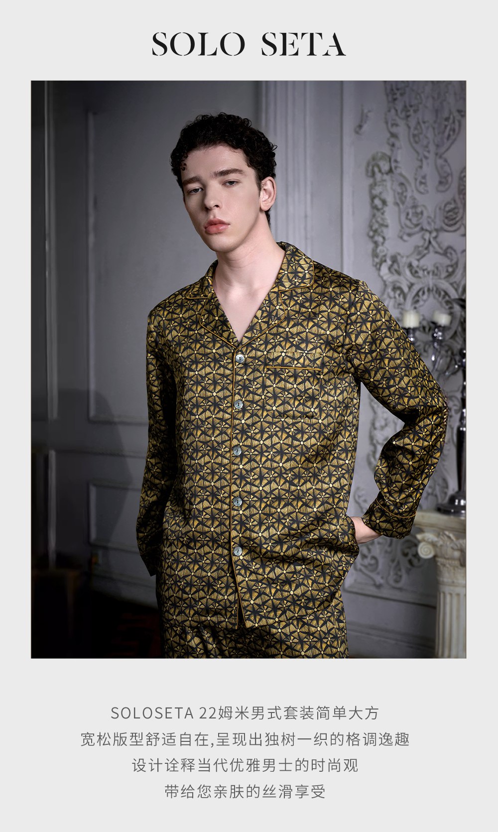 Solo seta22姆米男士真丝长款套装桑蚕丝凉感家居服丝绸印花新款