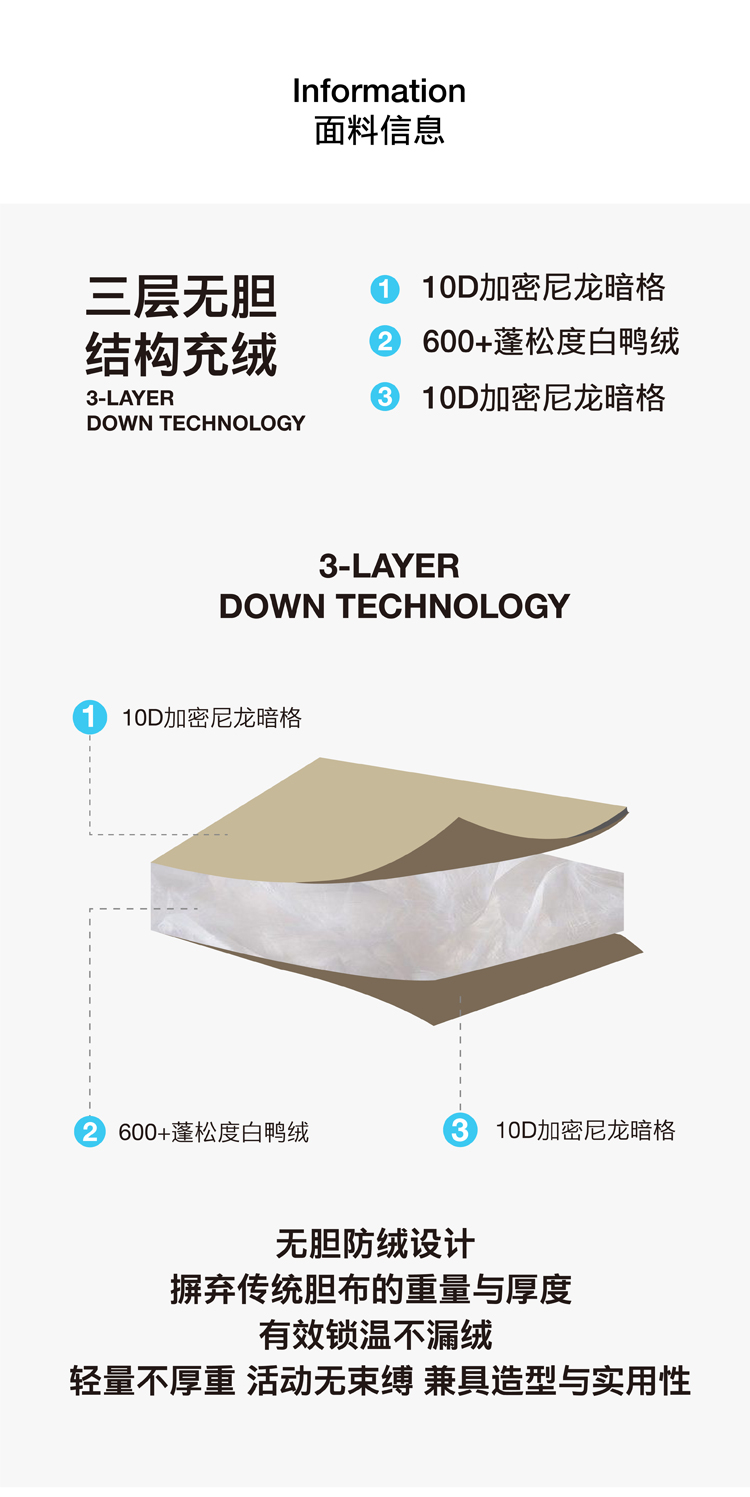 CryingCenter白鸭绒分割结构无胆轻量防绒锁温连帽羽绒服外套男女