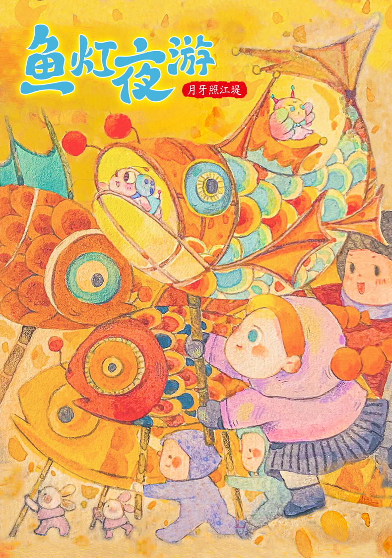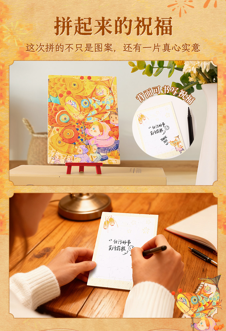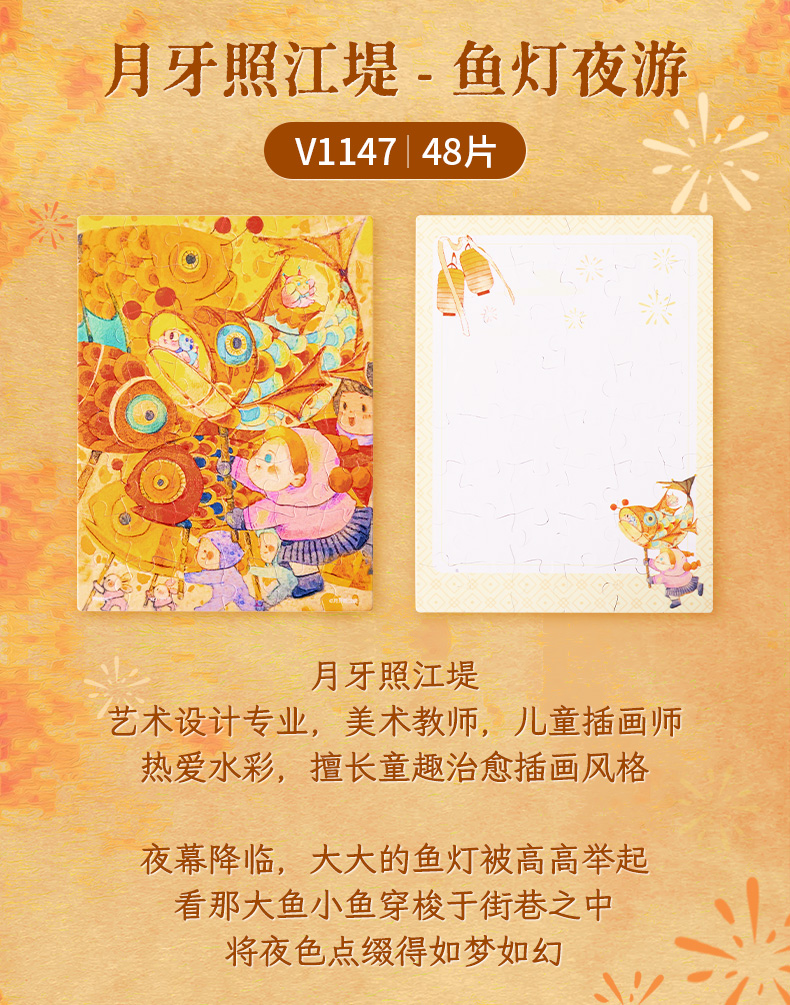 48片 贺卡拼图 V1147 月牙照江堤-鱼灯夜游