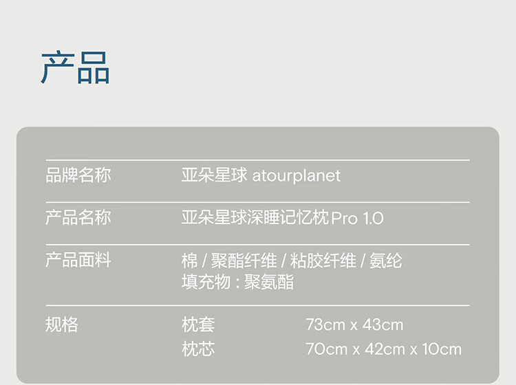 亚朵星球 第1代深睡枕PRO 70*42*10cm