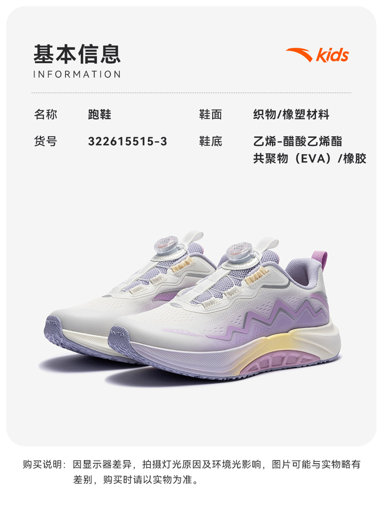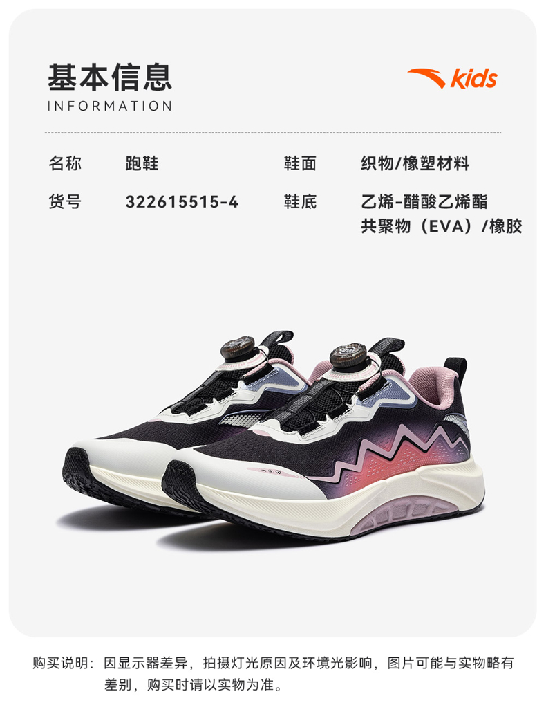 足弓安踏儿童女大童跑鞋2026年新款防滑耐磨中大童日常跑运动童鞋322615515