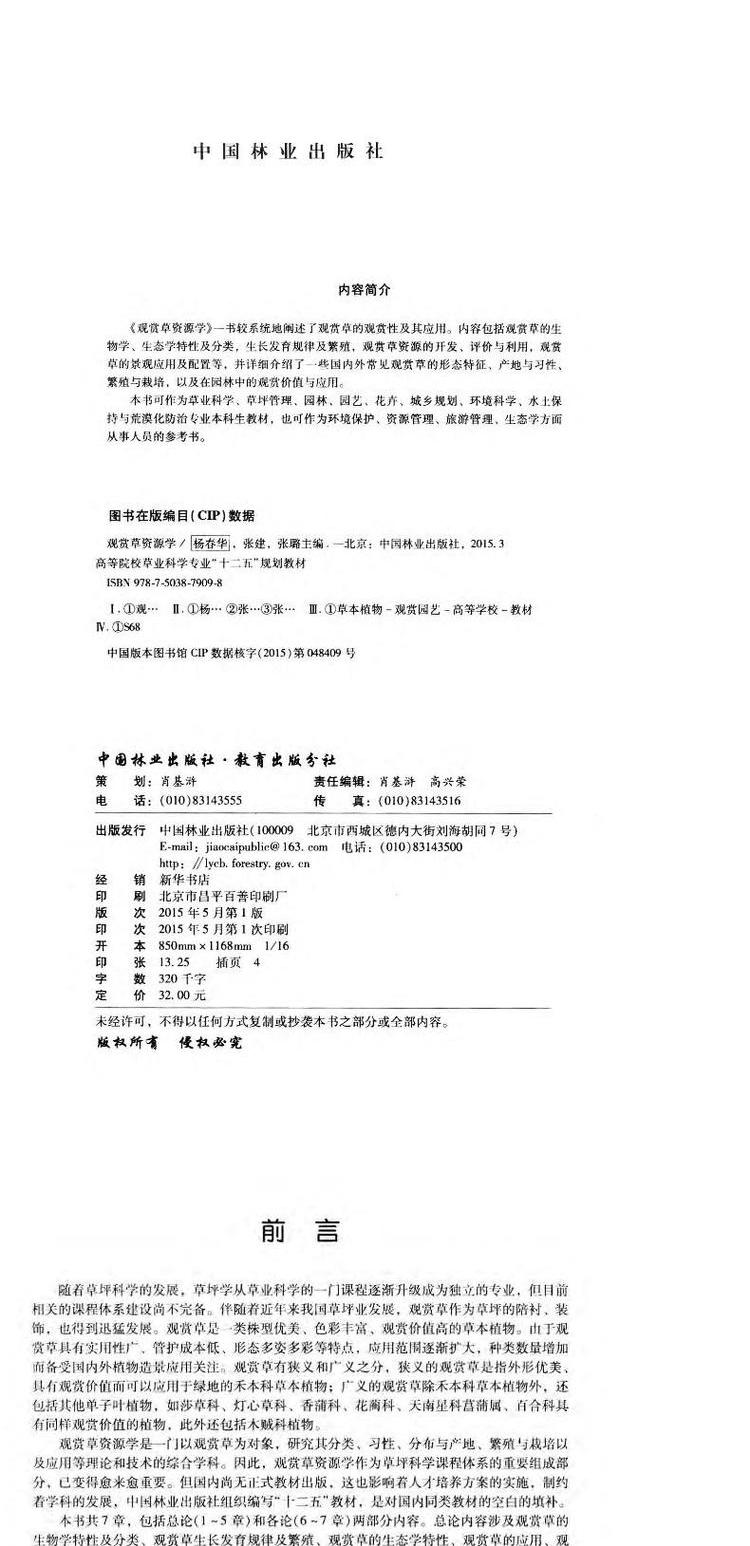 观赏草资源学 中国林业出版社教材7909