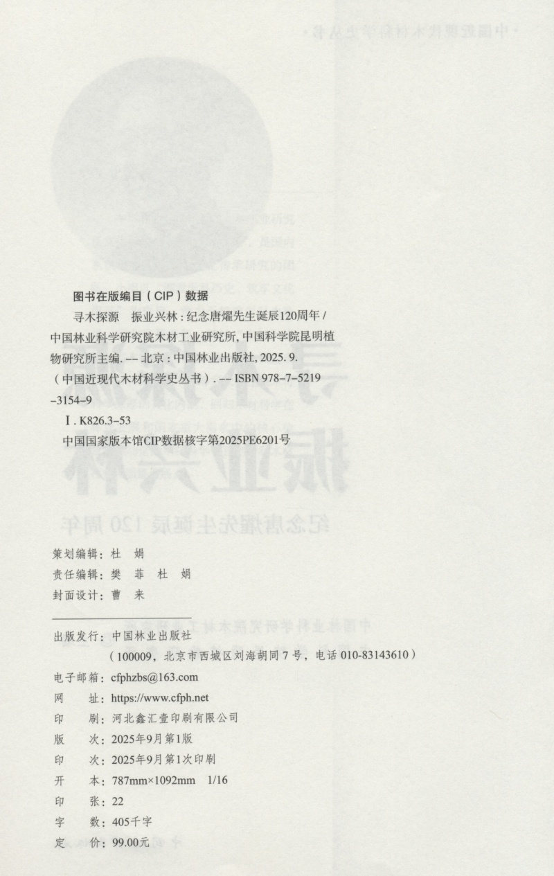 中国近现代木材科学史丛书: 寻木探源 振业兴林——纪念唐燿先生诞辰120周年 &3154