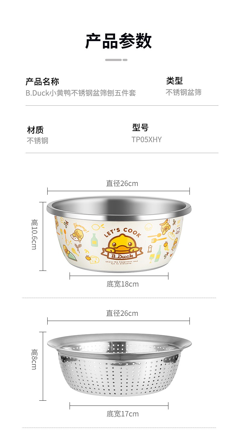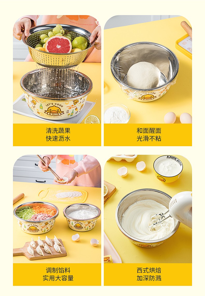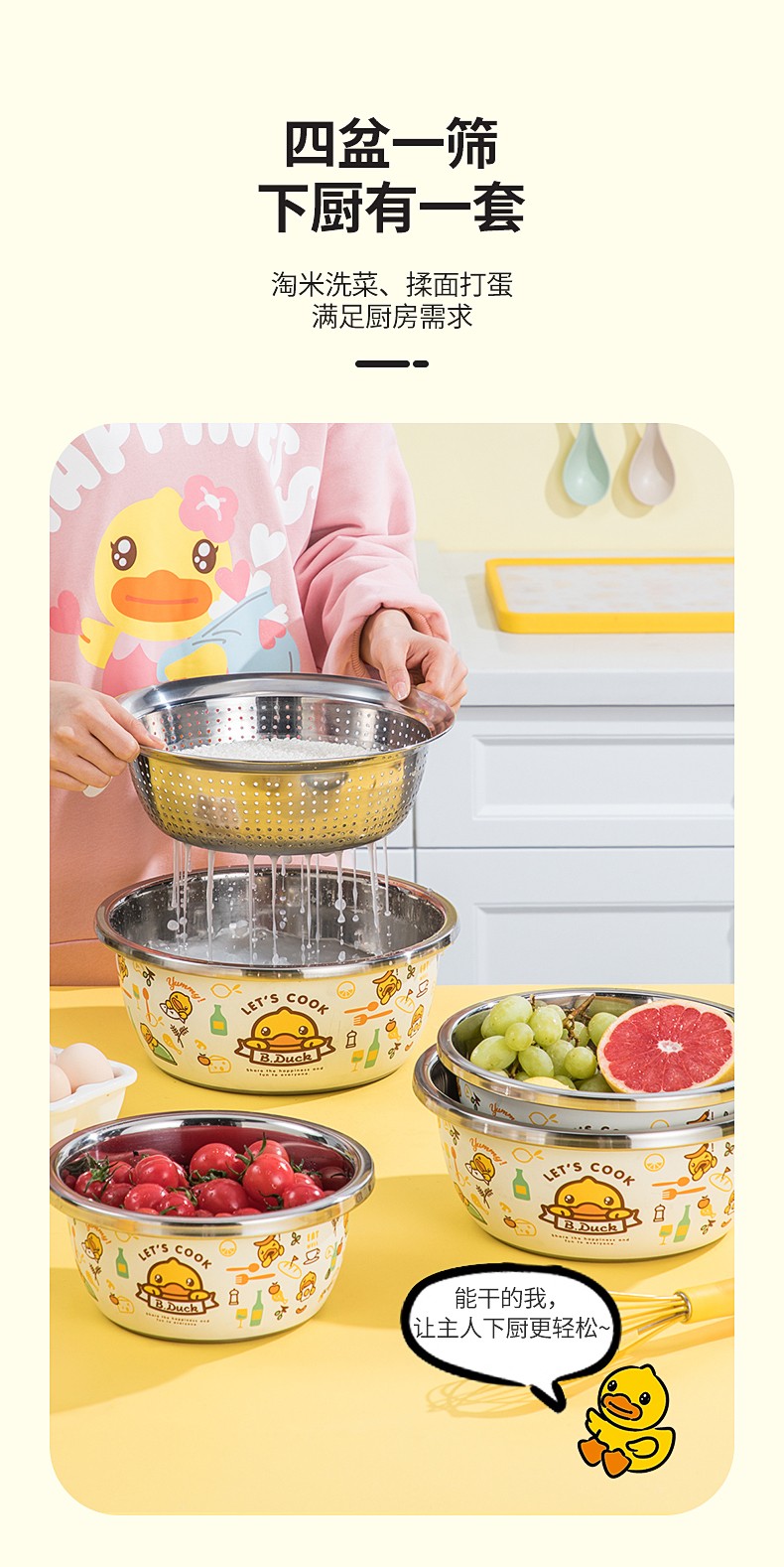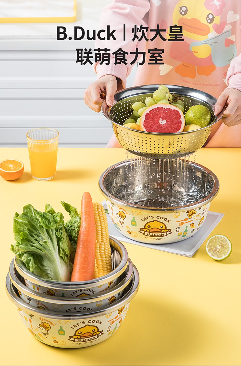 炊大皇B.Duck小黄鸭不锈钢盆筛刨三件套