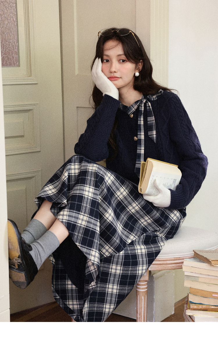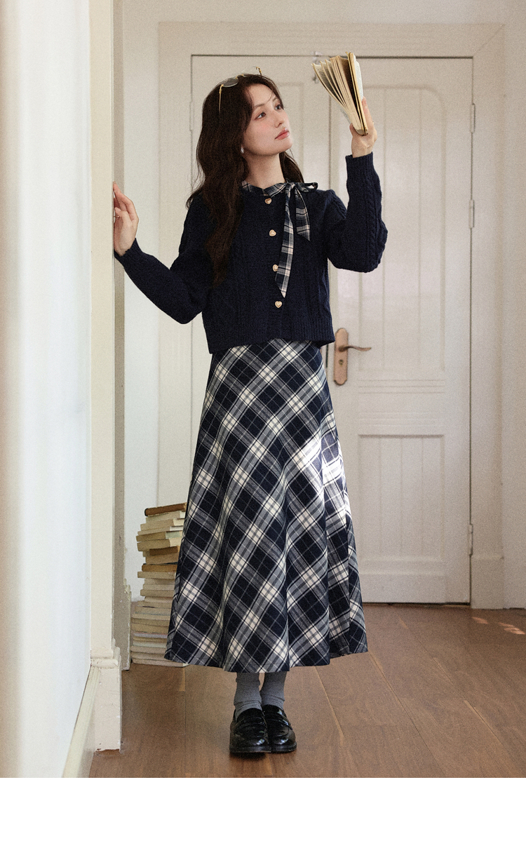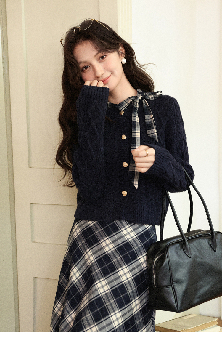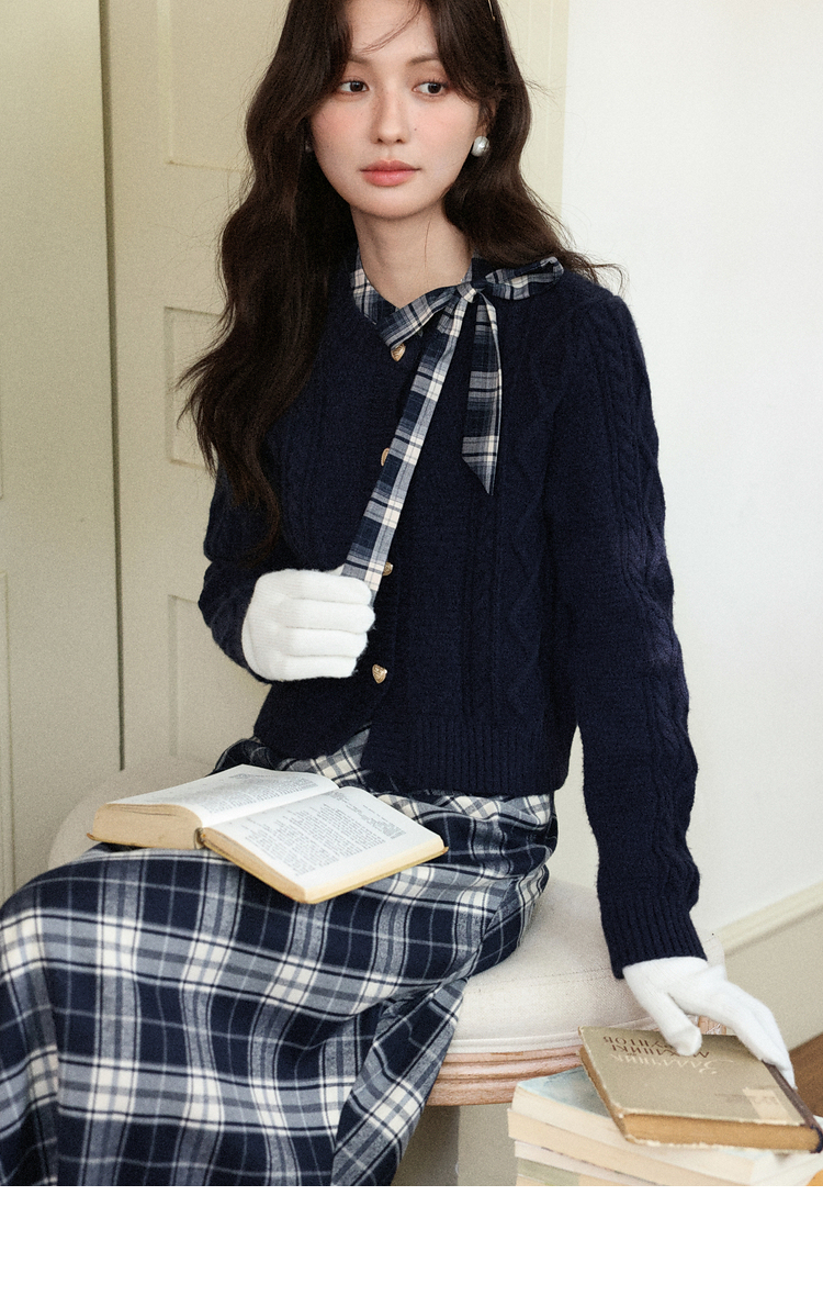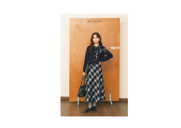 鹿向南「绒冬格调」蓝色圆领法长袖式针织开衫秋冬外搭温柔毛衣女